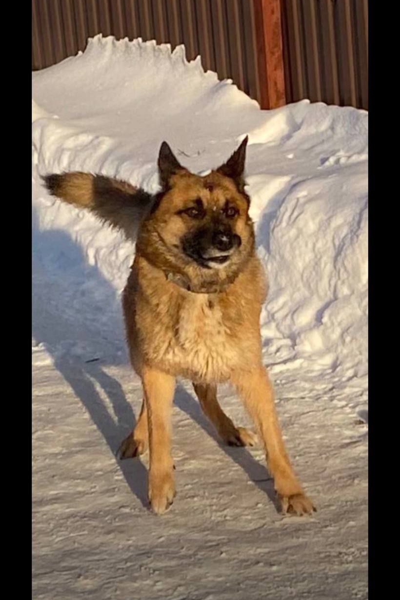 очень добрая, спит в сугробе, хожу кормить ее, ошейник на шее есть.