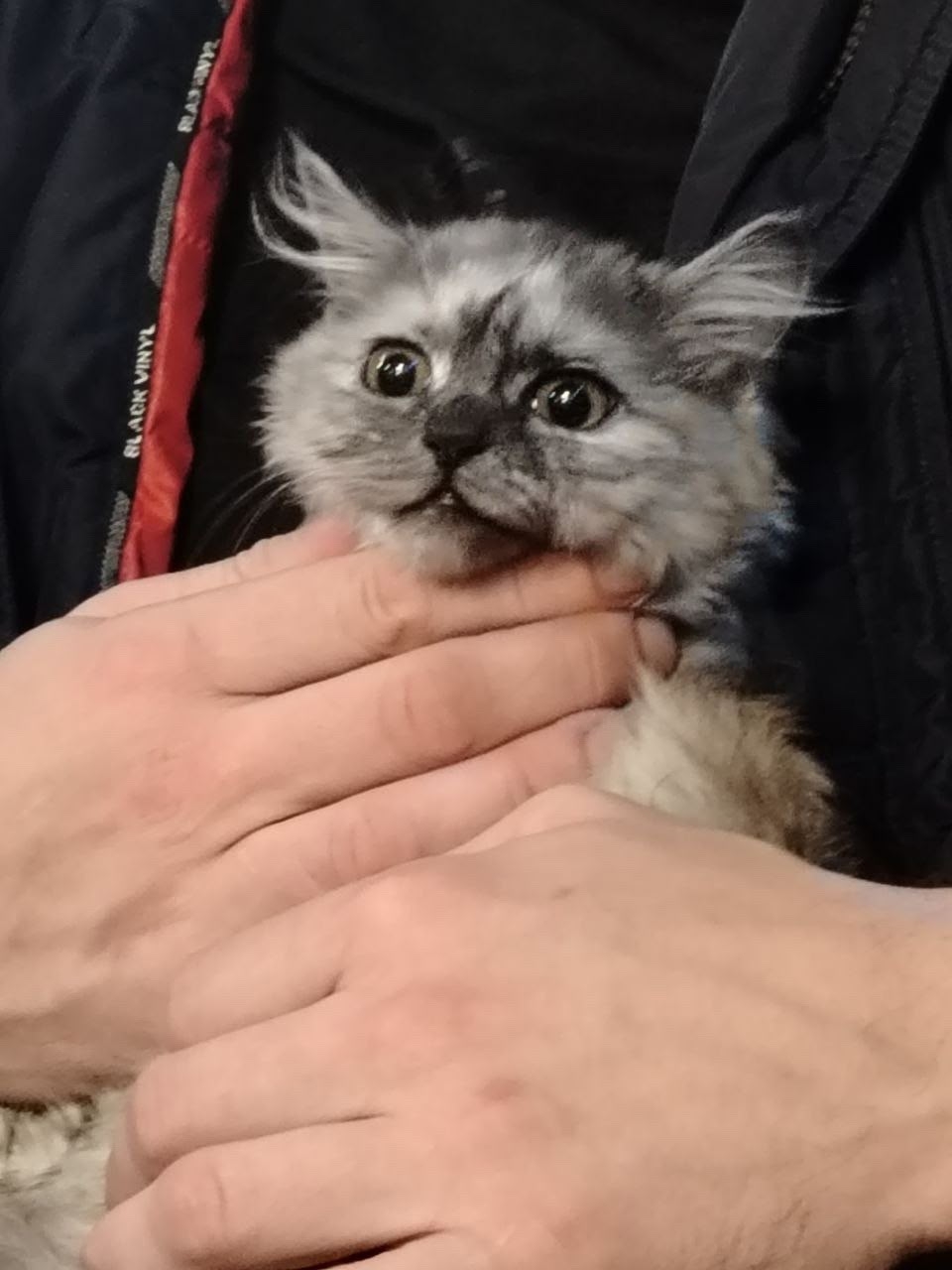 Малахова/Волгоградская от собак убегала серенькая молоденькая кошечка. Компания людей ее поймали. Сейчас находится в пивном баре🫠 пристраивать ее там никто не хочет. Кошечке срочно нужно помочь с передержкой или пристройством сейчас, понять что с хвостом🙏🏻