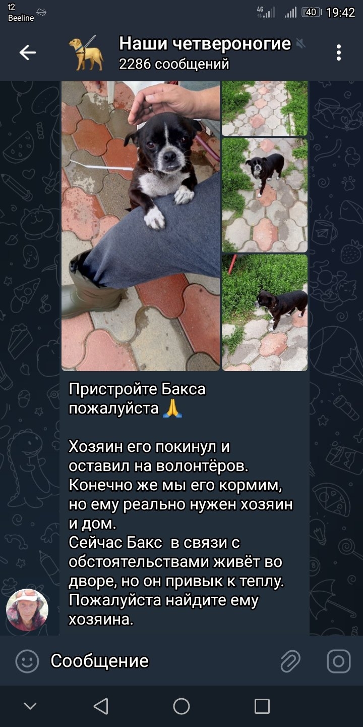 Маленькая собачка в п. Волна (Тамань) была брошена хозяином. Вернее, брошен. Знакомьтесь, это Бакс. Очень общительный, но может и погавкать. Настоящий охранник. Его подкармливают волонтёры, но малышу нужен настоящий ДОМ!!! Присмотритесь, может, это ваш друг? Постараемся привезти!