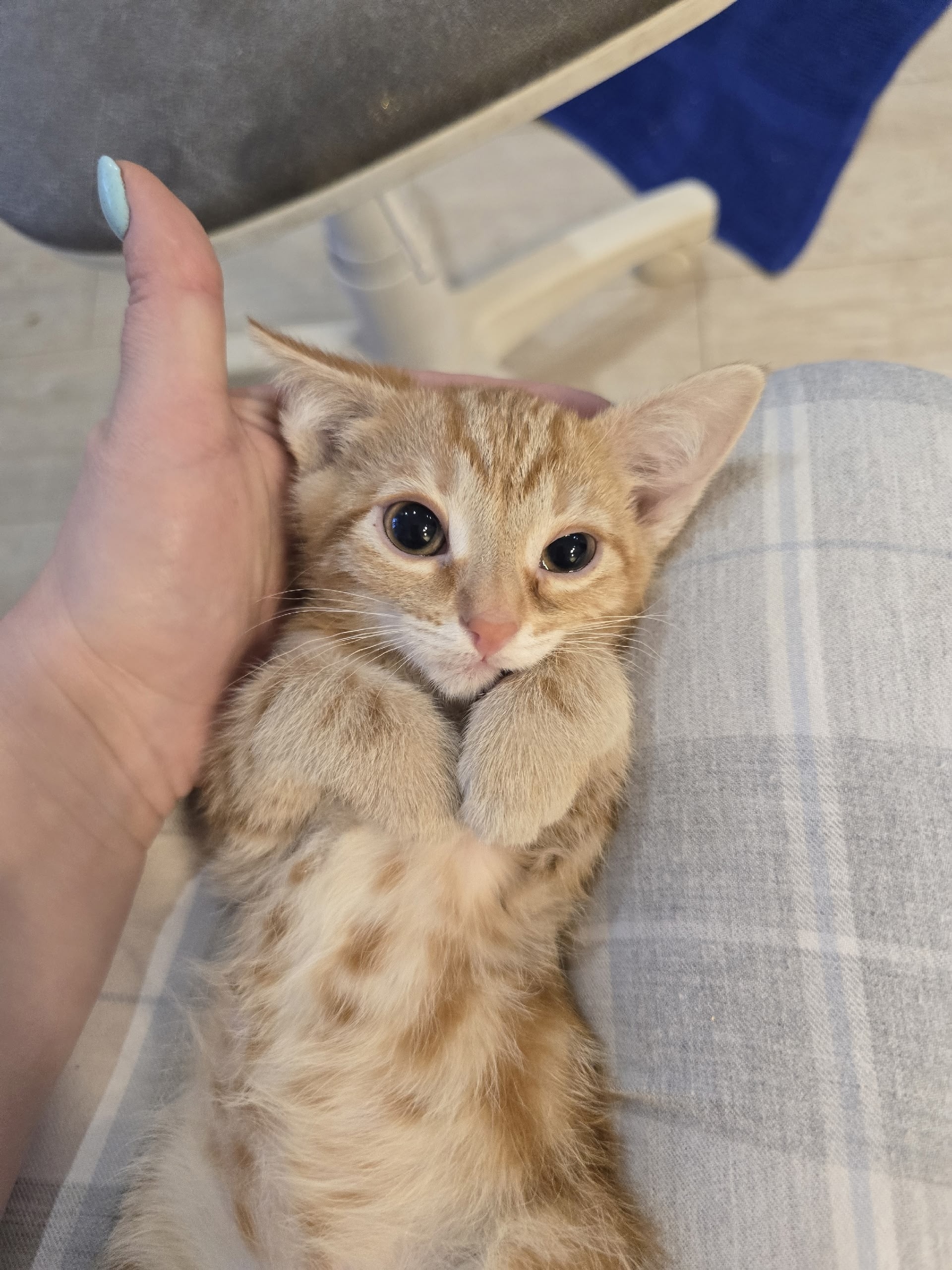 Налика — ярко-рыжая, с красивым окрасом табби, огненная девочка! Очень активная, смелая и игривая. Заряжает энергией всех вокруг. Возраст 2,5мес.