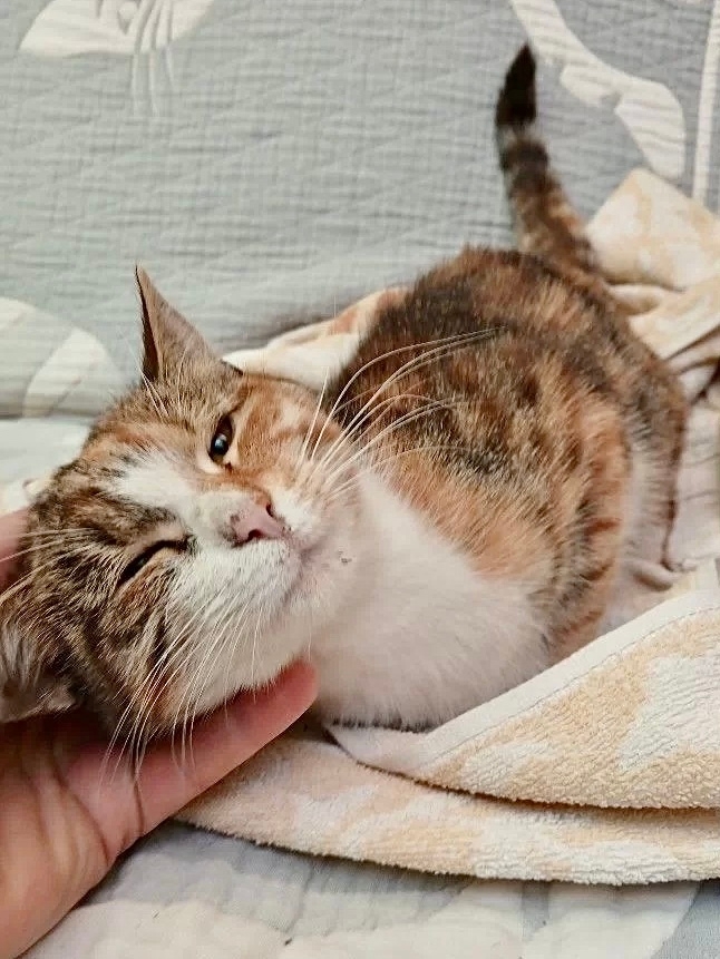 Очень контактная, ласковая девочка. С рук не слазит, ластится и мурлыкает.
