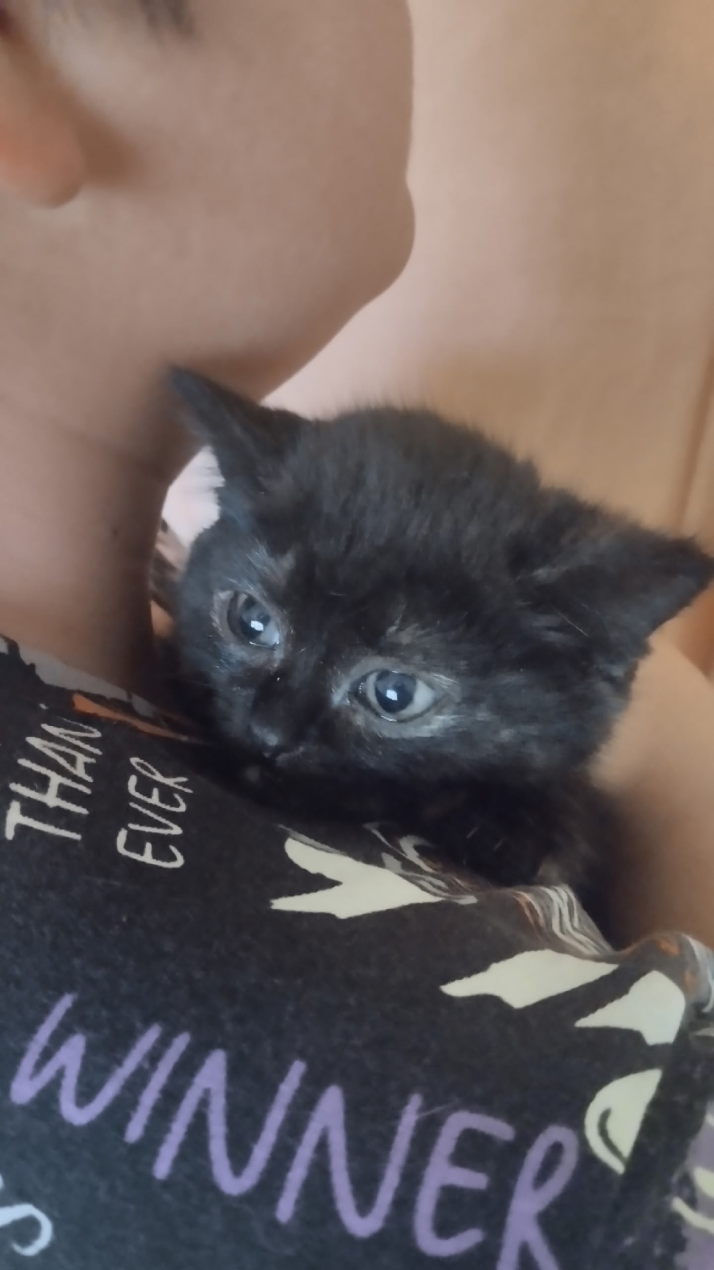 Самая маленькая, самая скромненькая, самая нежная и трогательная девчушка. Но это с человеком 🤗 со своими сестричками гоняет наравне 😺
