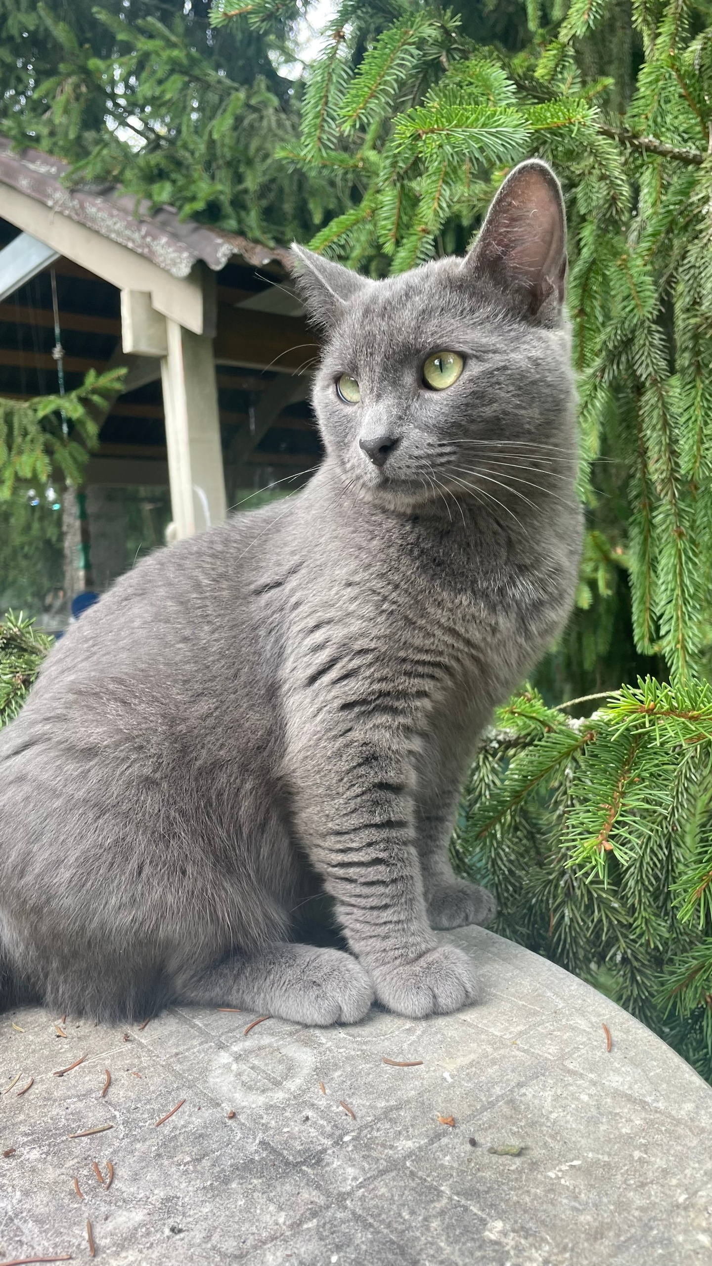 Помогите найти Шанти! Окрас серый однотонный, фенотип русская голубая, 2 года, стерилизована. Есть особая примета – внутри глаза видно кровеносный сосуд.