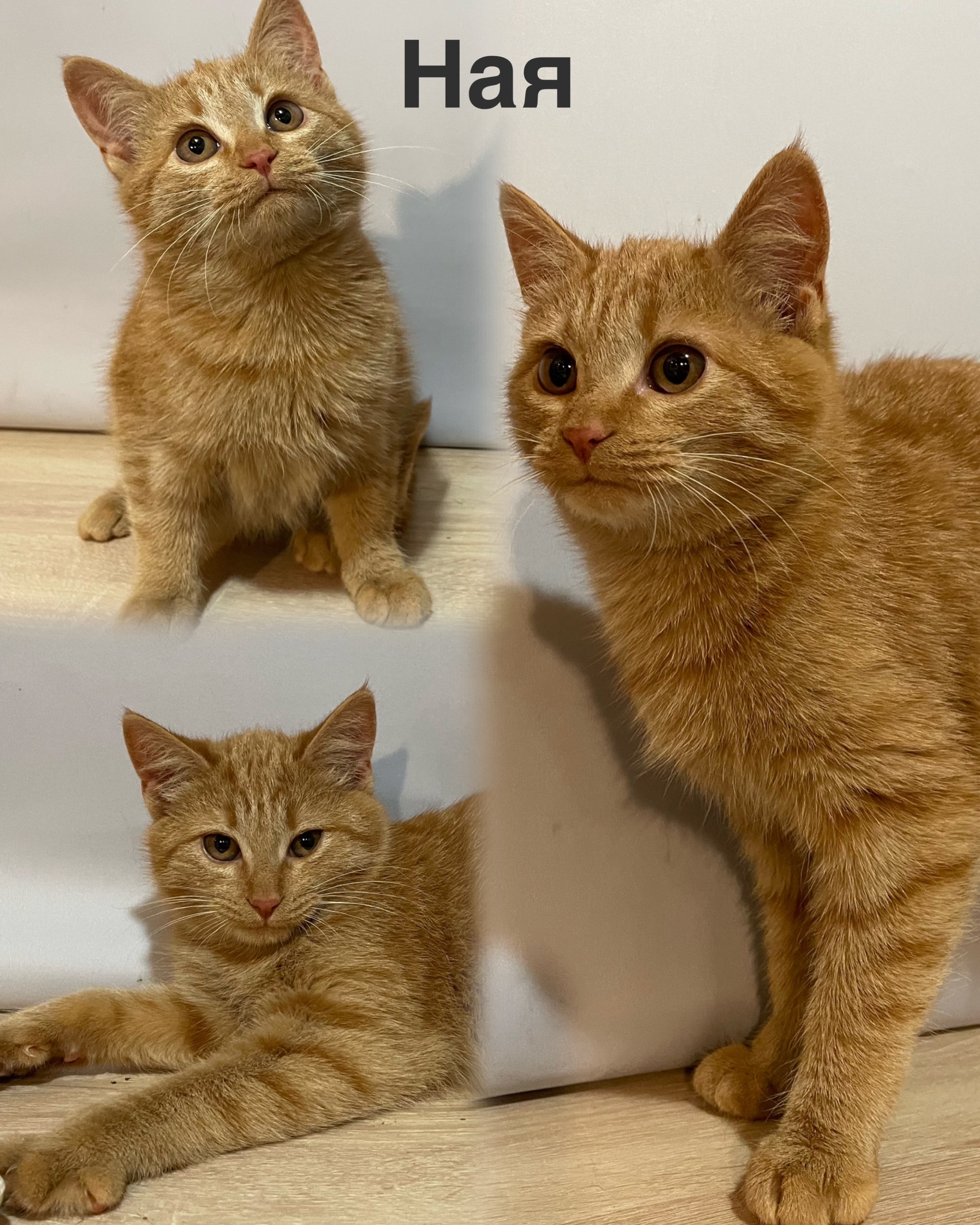 Рыжей ребятне всего 5 месяцев. Дикая мама кошка родила у нас во дворе, сейчас, к сожалению, все семейство вынуждено жить в клетке до лучших времен, так как взять их абсолютно некуда.