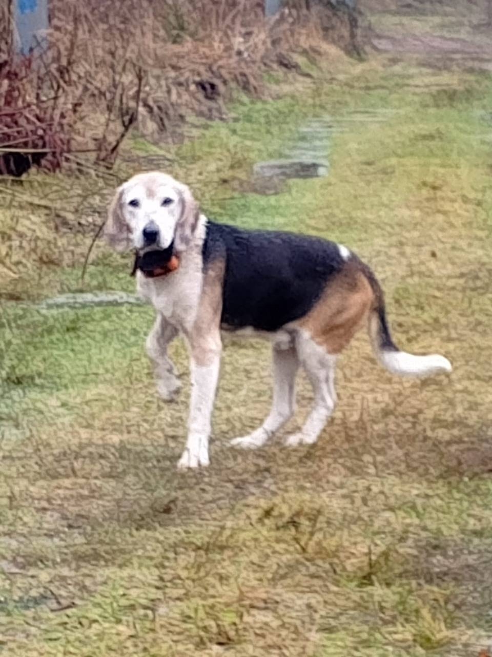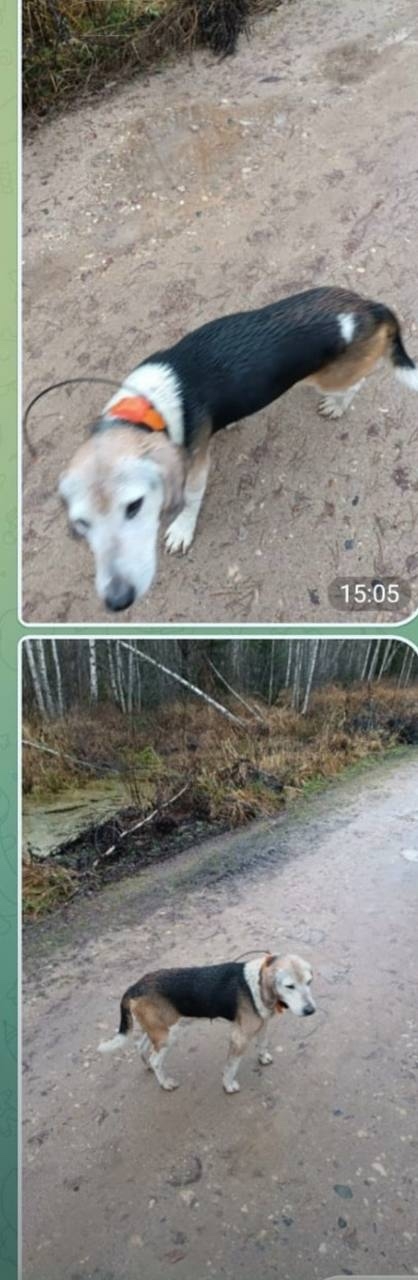 Замечена охотничья собака гончая? с трекером, хромает. 18.11.2025. В руки не дался..