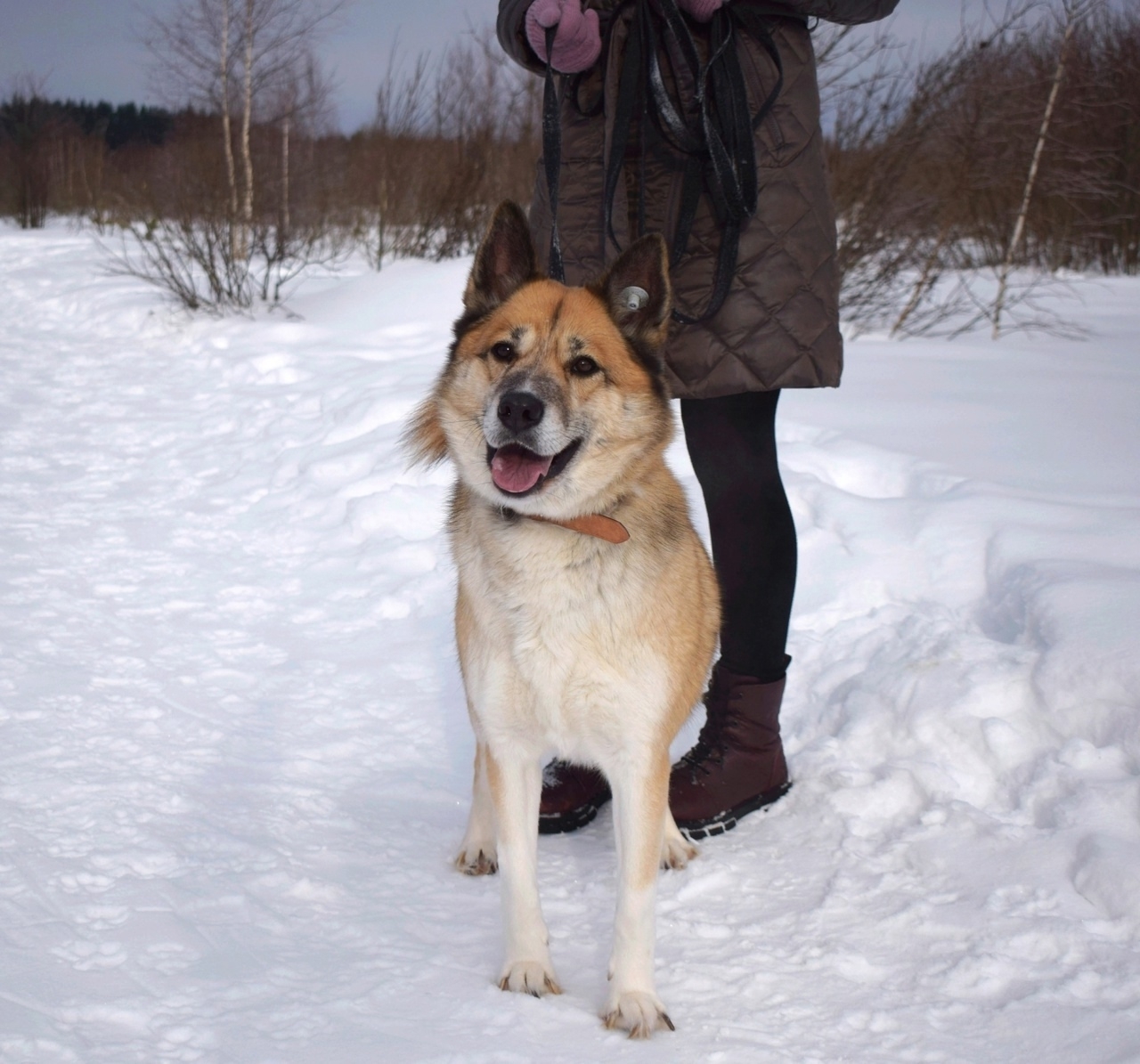 Челси предположительно метис лайки, характер вполне лаечный – умная, довольно самостоятельная, комфортная в общении собака. Обладает хорошей памятью и умеет издалека узнавать знакомых людей)