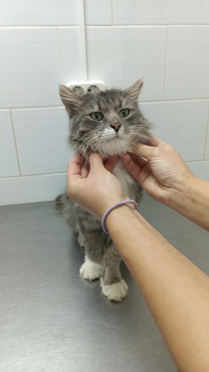 Серый молоденький котейка ~1г, прошел осмотр у ветеринара здоров, после травмы осталась небольшая шаткость в походке, кастрирован. Обработан от блох и паразитов!
