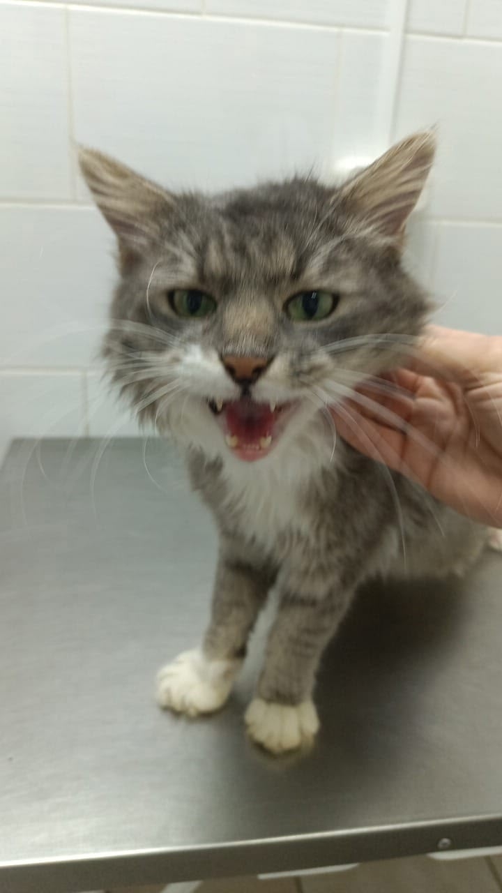Серый молоденький котейка ~1г, прошел осмотр у ветеринара здоров, после травмы осталась небольшая шаткость в походке, кастрирован. Обработан от блох и паразитов!