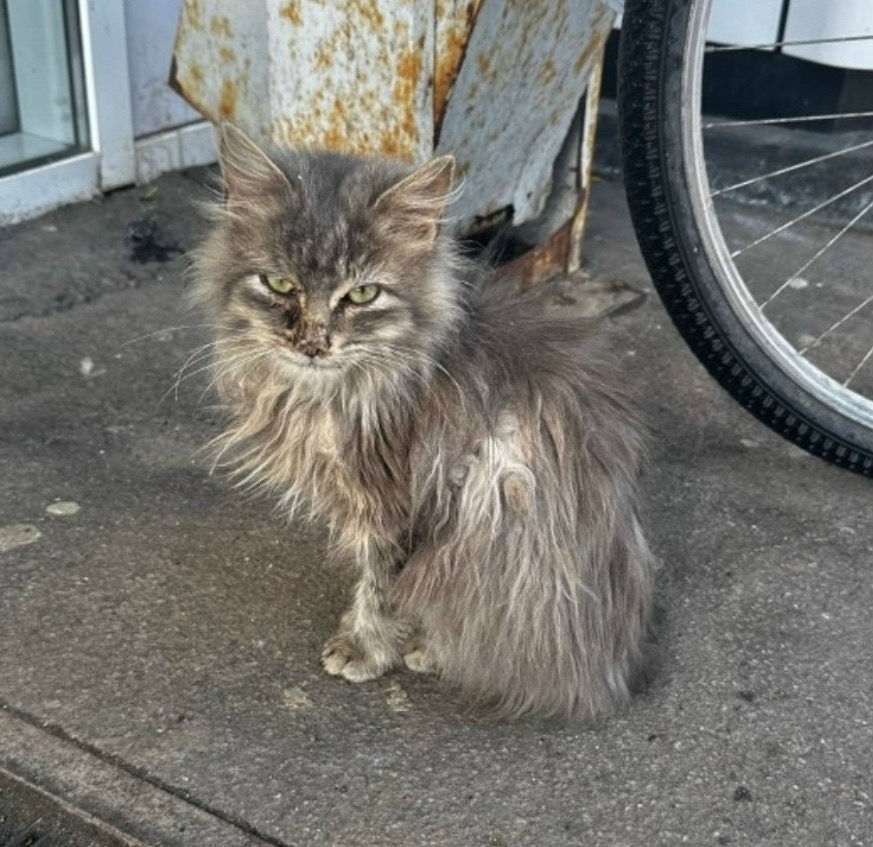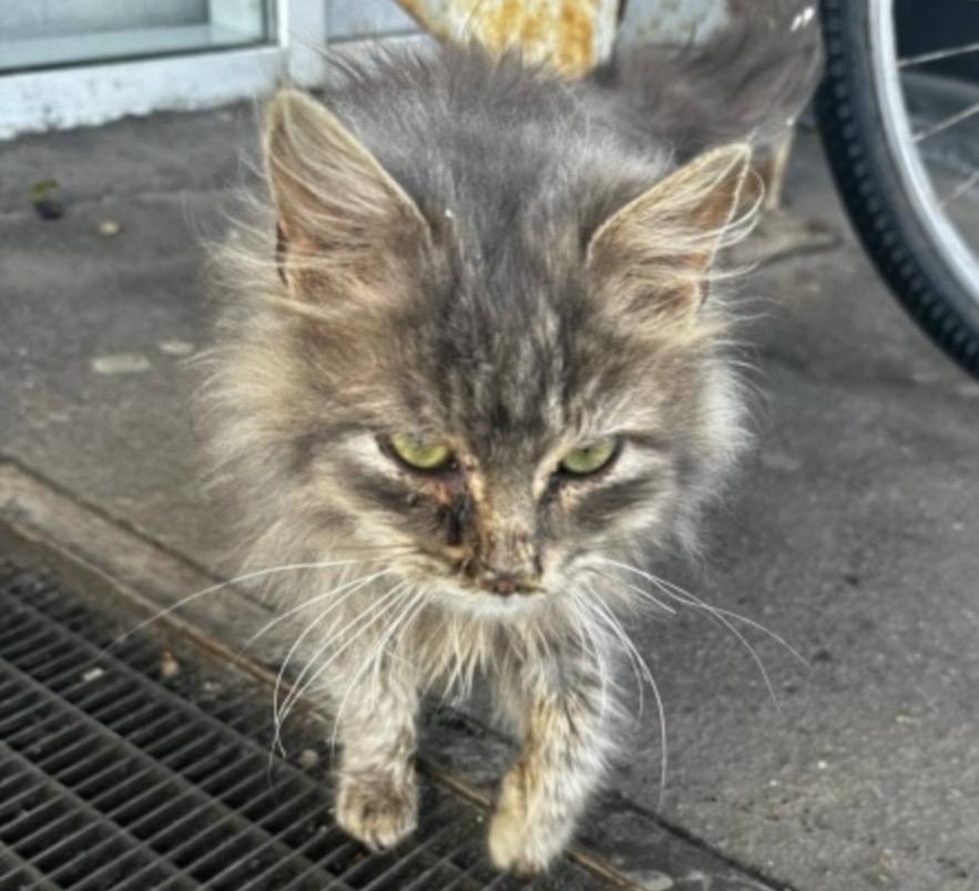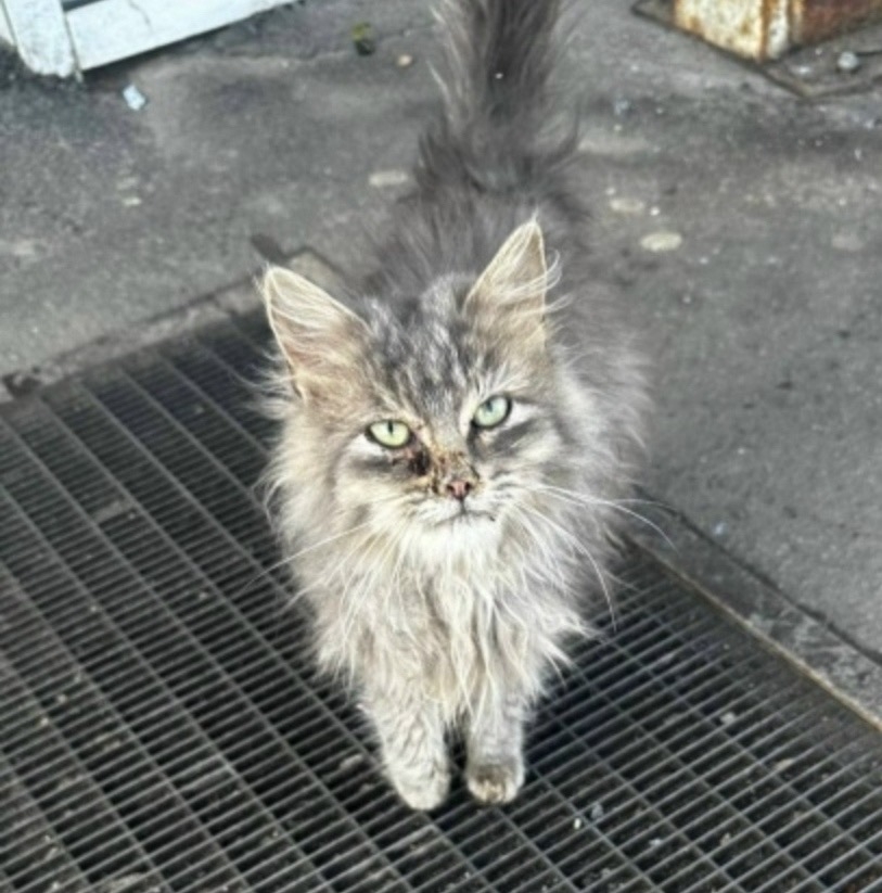 🆘Замечен котёнок! Очень ласковый и нежный.❗От еды отказывается, мурчит и просит ласки, что-то с носиком и глазками❗