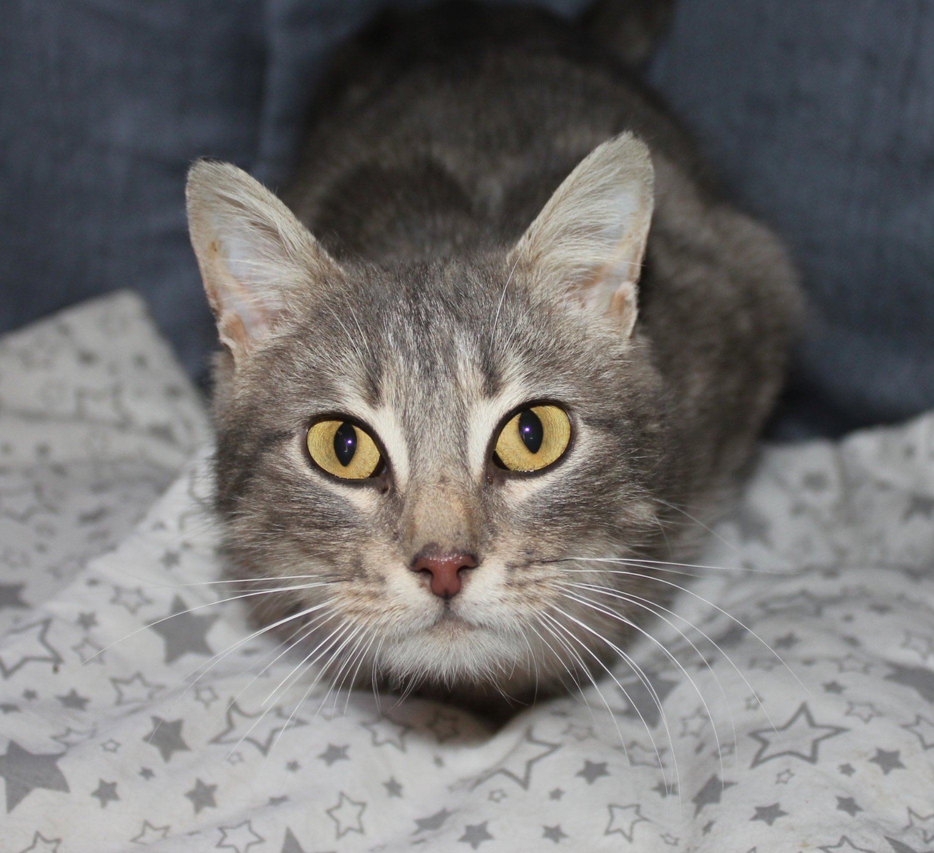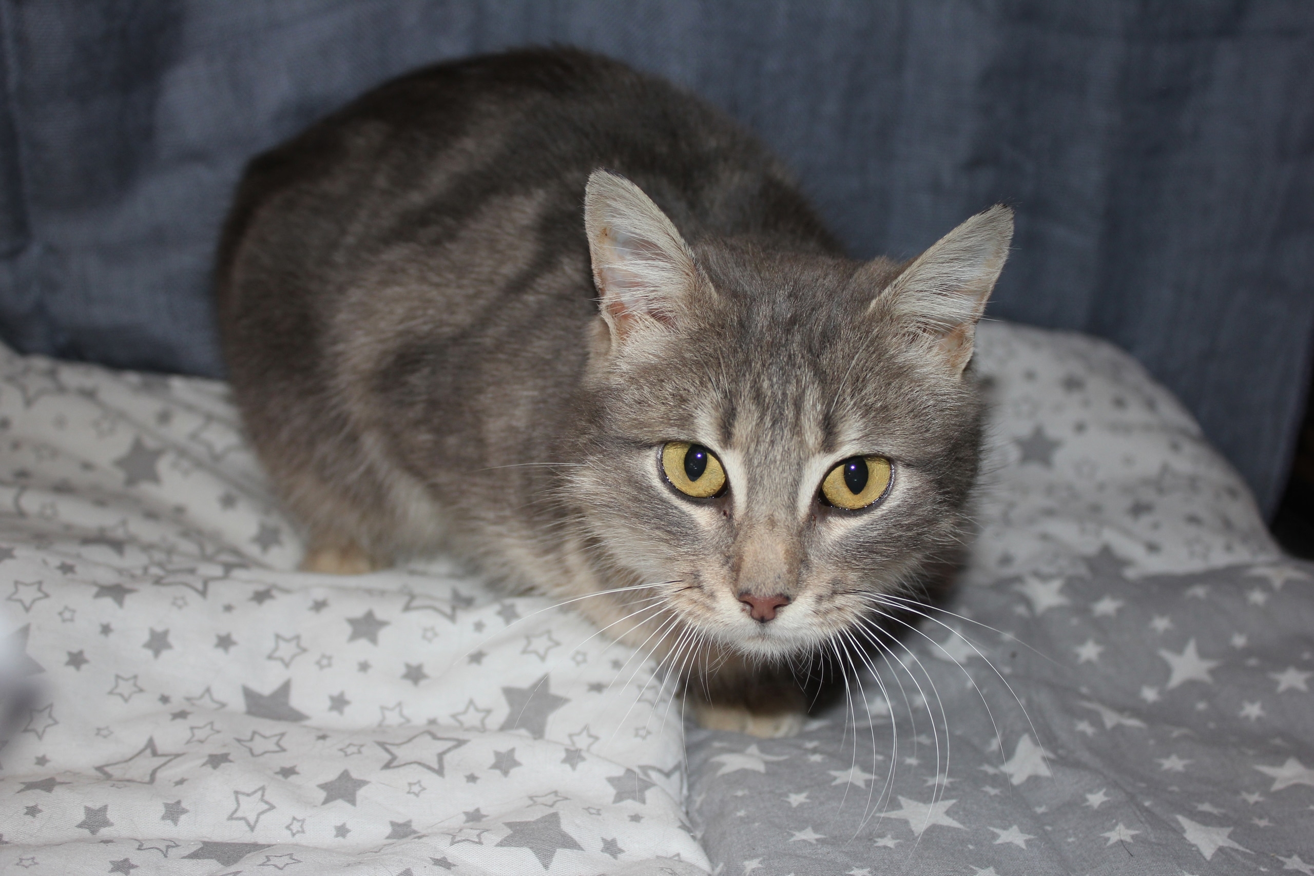 Какже ей нужны хозяева,которые приласкают и подарят место на теплом диванчике.Возраст около года.Стерилизована.Лоток знает.По характеру ласковая и общительна,но на ручках пока не сидит.Надо время.
