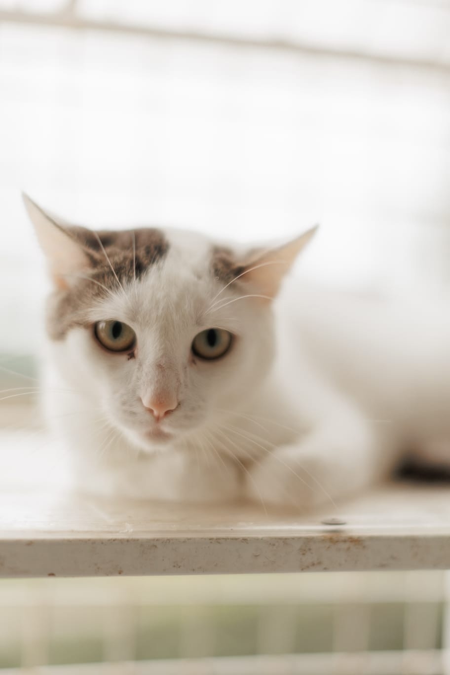 Белая, как облачко, кошечка с очаровательными серыми пятнышками и розовым носиком 💕🪽