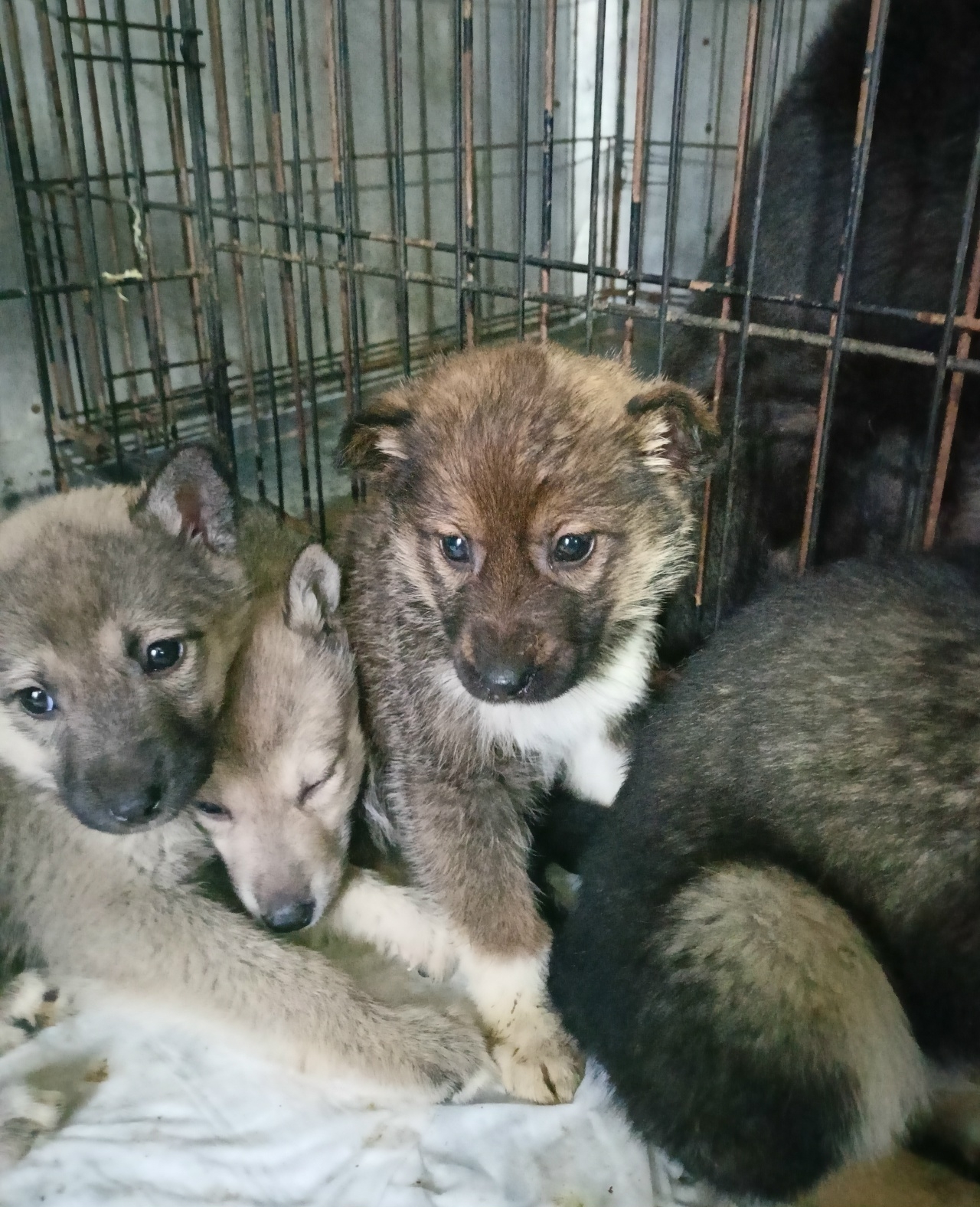 Ей всего 1,5 месяца, привита первой вакциной, вырастет предположительно среднего размера (сейчас она прям крохотулечка, самая маленькая из всех).