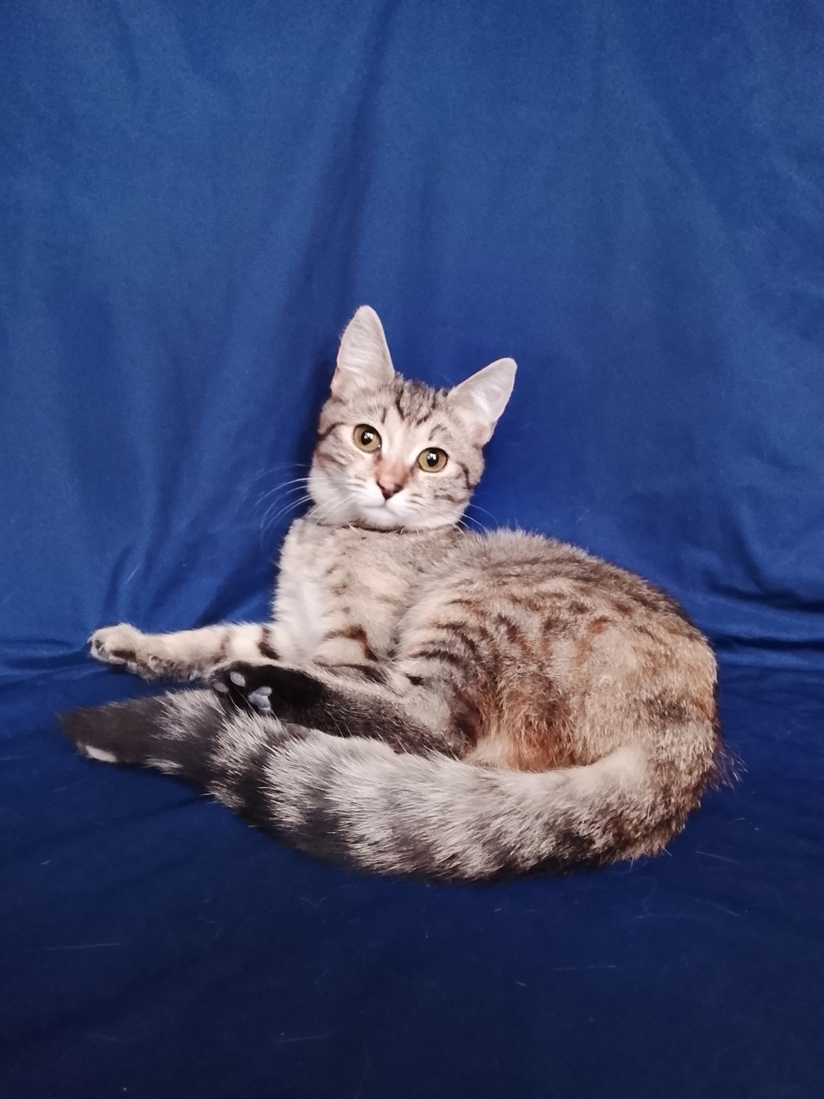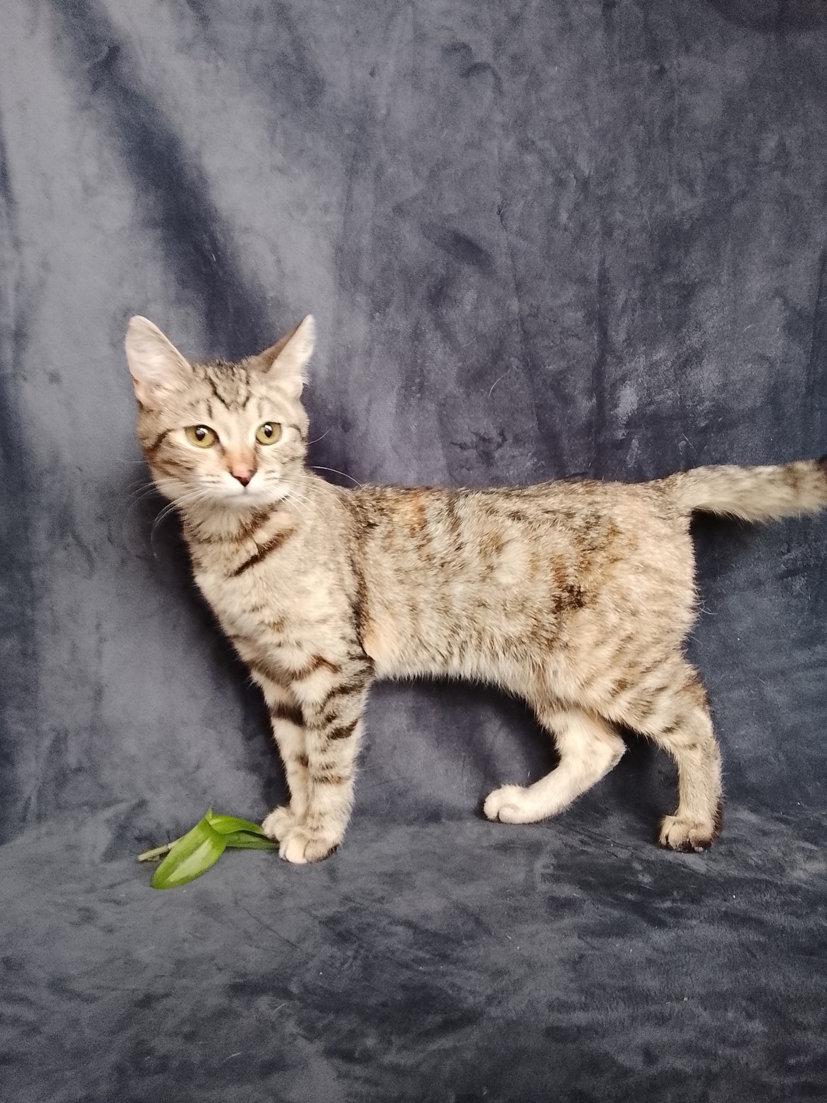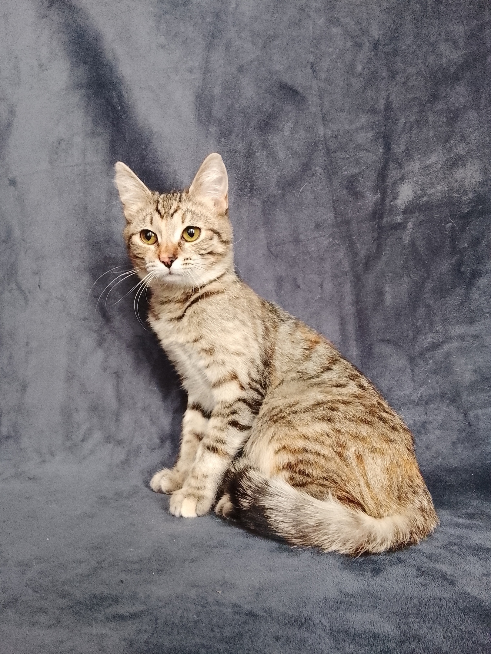 Ласковая, игривая малышка, очень общительная, обожает гладиться и мурчать на руках. Самодостаточная, знает чем себя занять, озорная и дружелюбная, легко привлечет сородичей в свою игру.