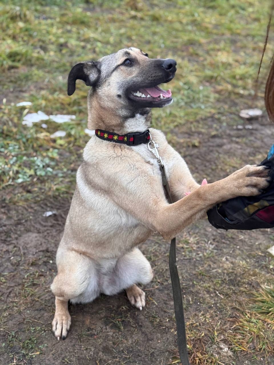 Буря хорошо ладит с другими собаками, хотя иногда может проявлять робкость. Мы ищем для нее дом в частном секторе, где она сможет жить свободно, а не на цепи.