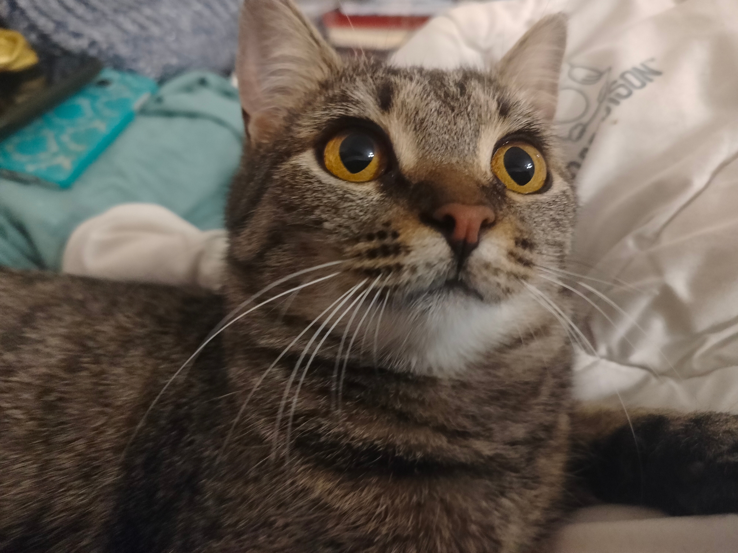 У Хлои очень яркие оранжевые глаза, явно есть помесь с какой-то породой. Также она несколько крупнее других обычных кошек. У неё длинные лапы и шея. Обследована у ветеринара, обработана от паразитов, привита, стерилизованна.
