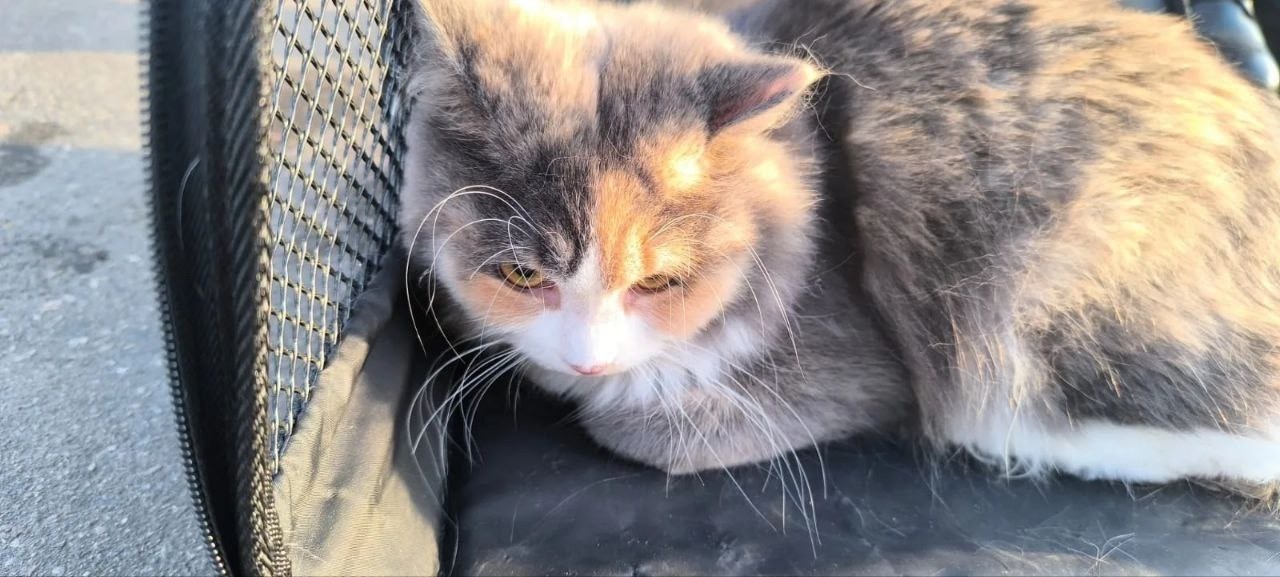 Кошка в переноске на улице. Срочно нужна помощь! Куратор! Дом!
