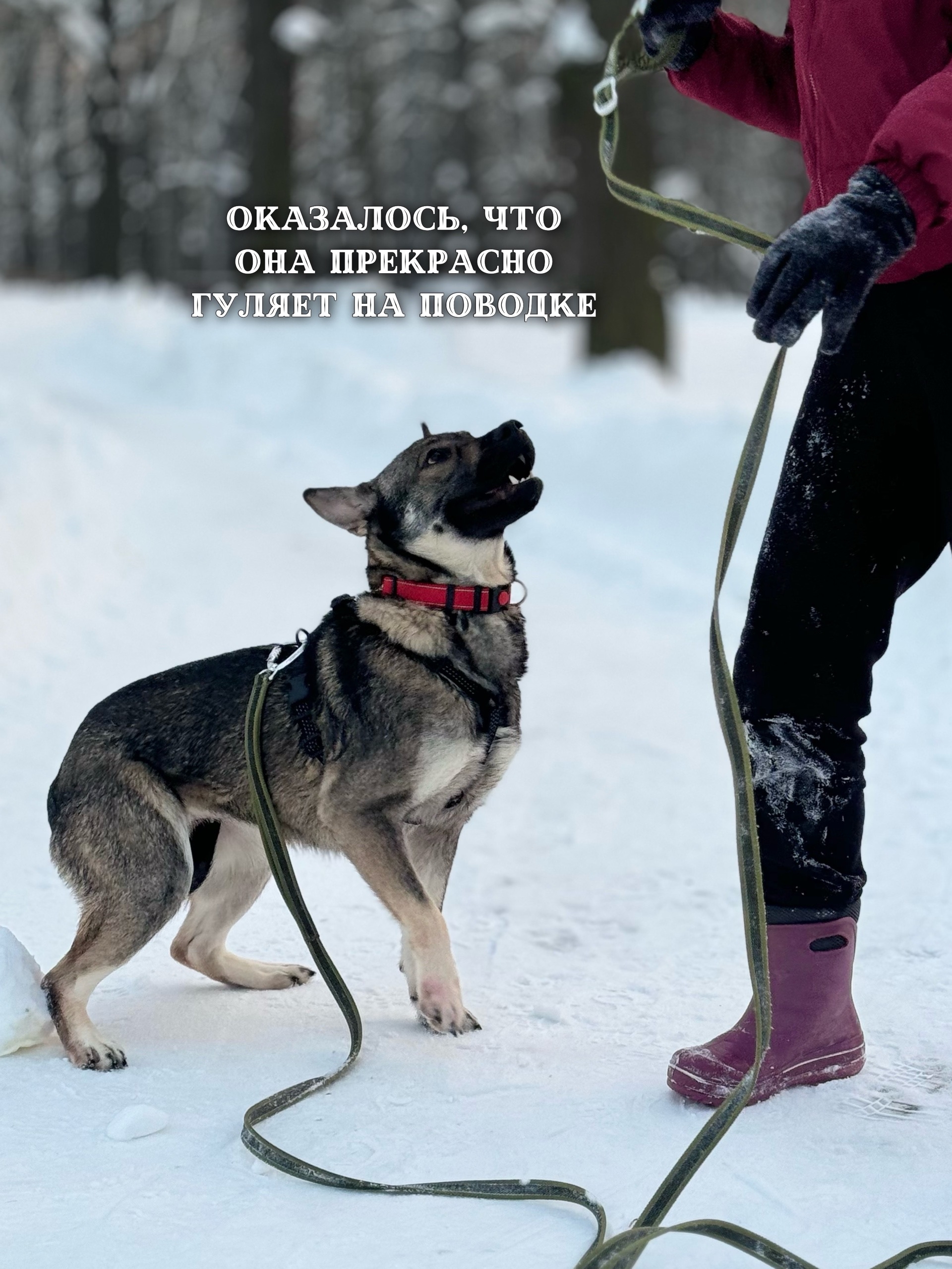 Она совсем небольшого размера, ниже колен. Прекрасно гуляет на поводке, общается с другими собаками. Может постоять за себя в случае необходимости.