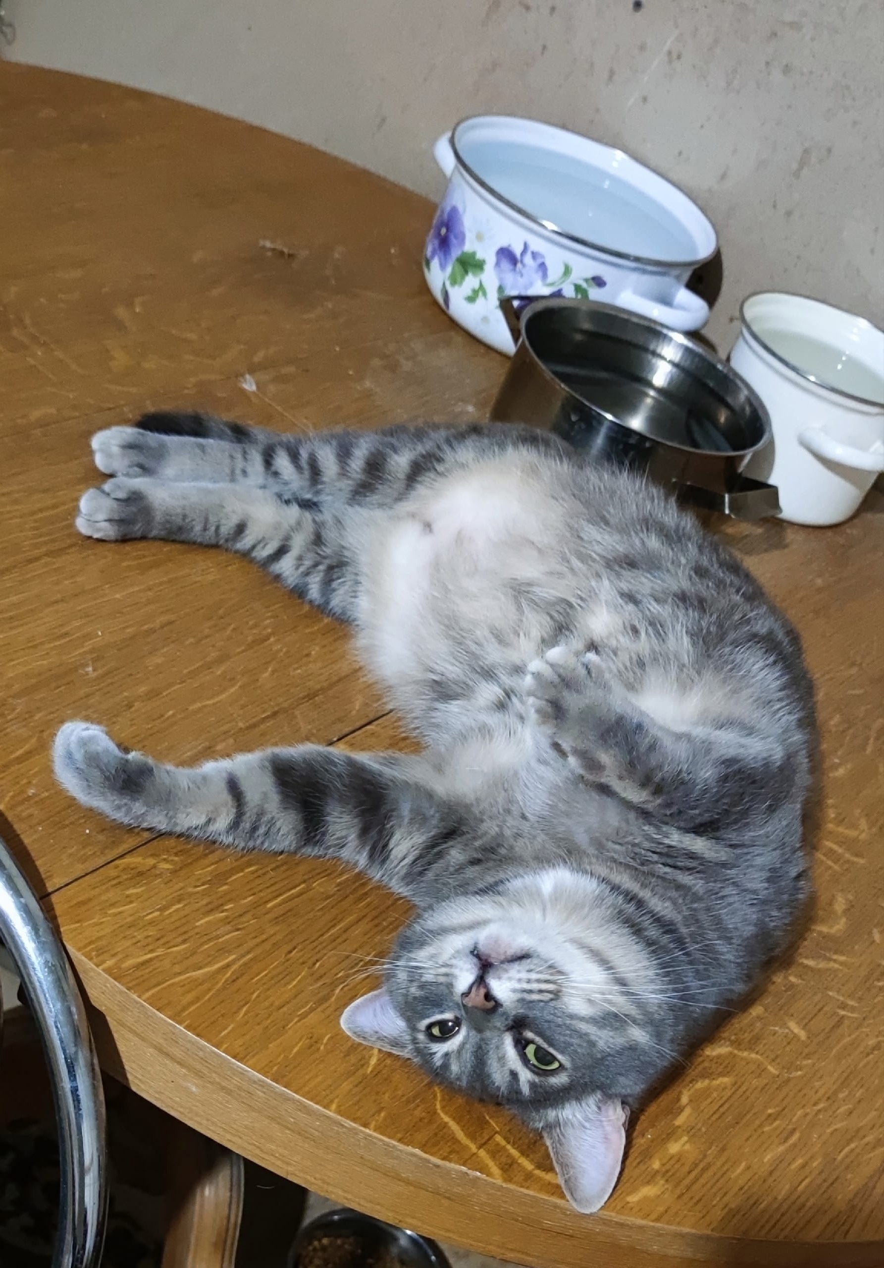 Деловой и уверенный в себе, привит, кастрирован, в меру полосат, все свои дела делает в лоток, ему года 4.