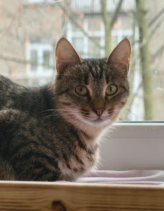 Характер: Бывшая домашняя кошка, перенесла немало трудностей. Доверяет людям постепенно, но быстро привязывается к новым хозяевам. Очень нежная и ласковая, обожает внимание и любит, когда её гладят. Реагирует мурлыканьем на любые проявления заботы. Отлично пользуется лотком, не привередлива в еде. Скромная и тихая, часто наблюдает мир из окна.