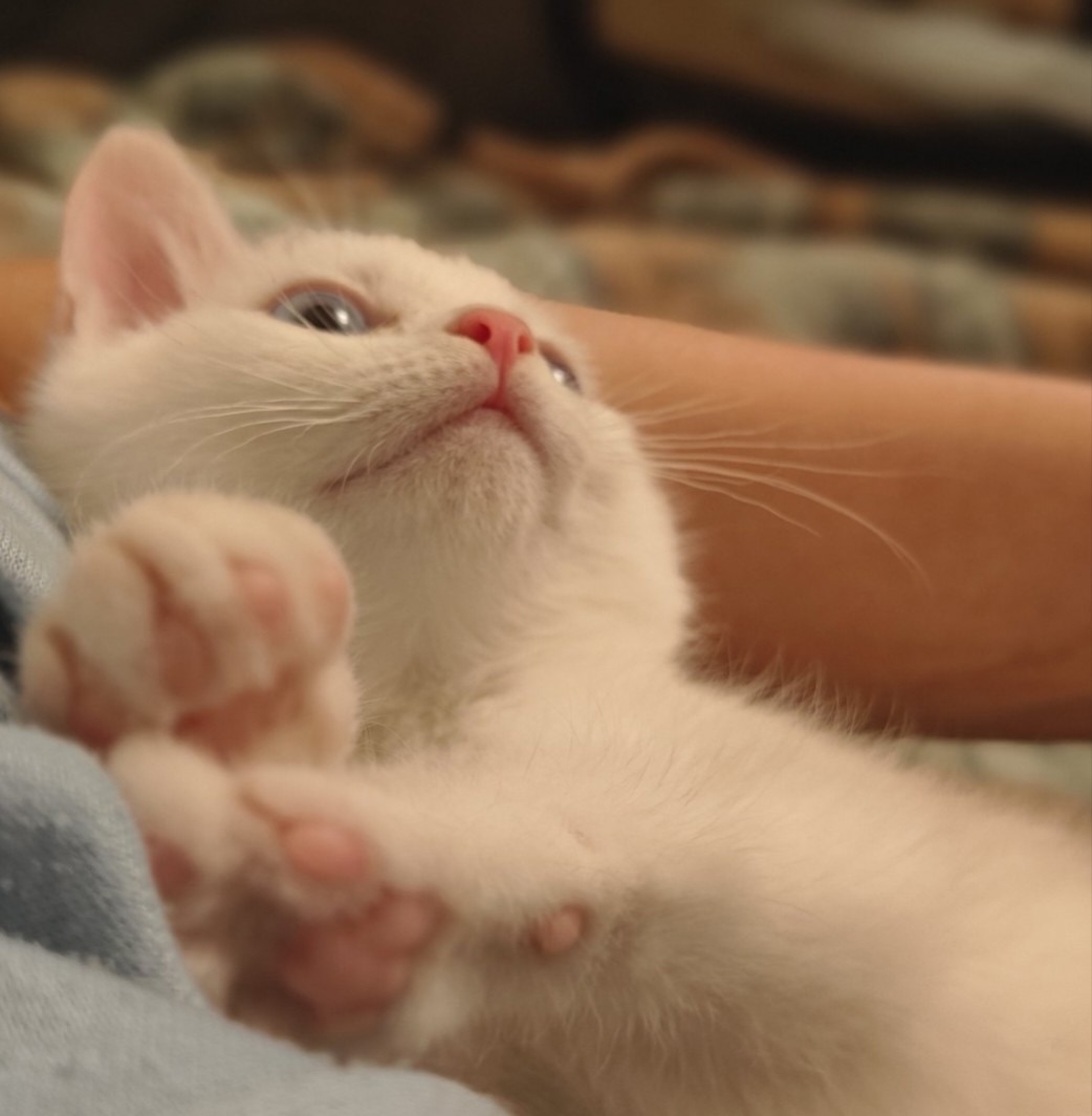 Была спасена с улицы из коробки у дороги, куда её выкинули с сестричками и братиком.