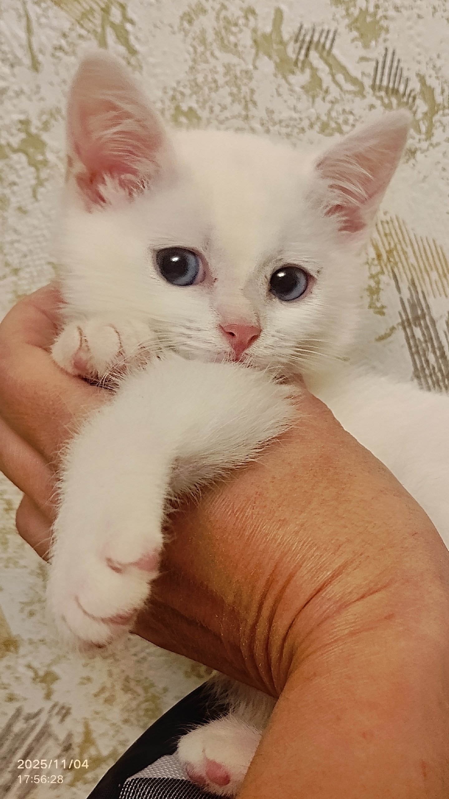 Нежная, любит лежать на ручках, тихонечко урчать и тарахтеть.