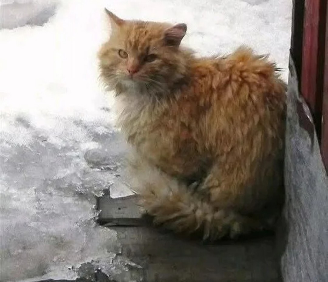 Котик в руки идёт. Выживает у помойки в ледяном помещении с выходом на улицу. Его ещё можно спасти…пока живой…