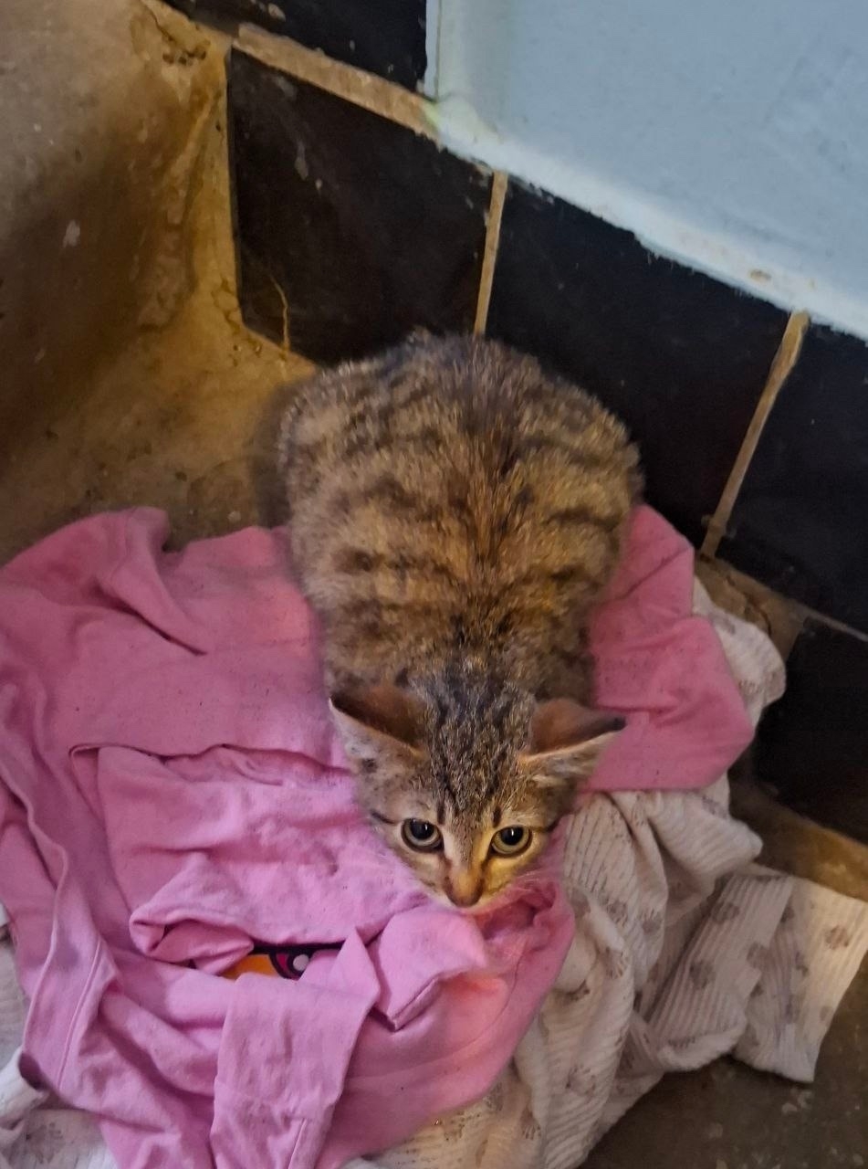 В поселке Снегири в подъезде нашли котенка. Соседи против,ругаются,его вынесли на улицу,но дети его вернули обратно