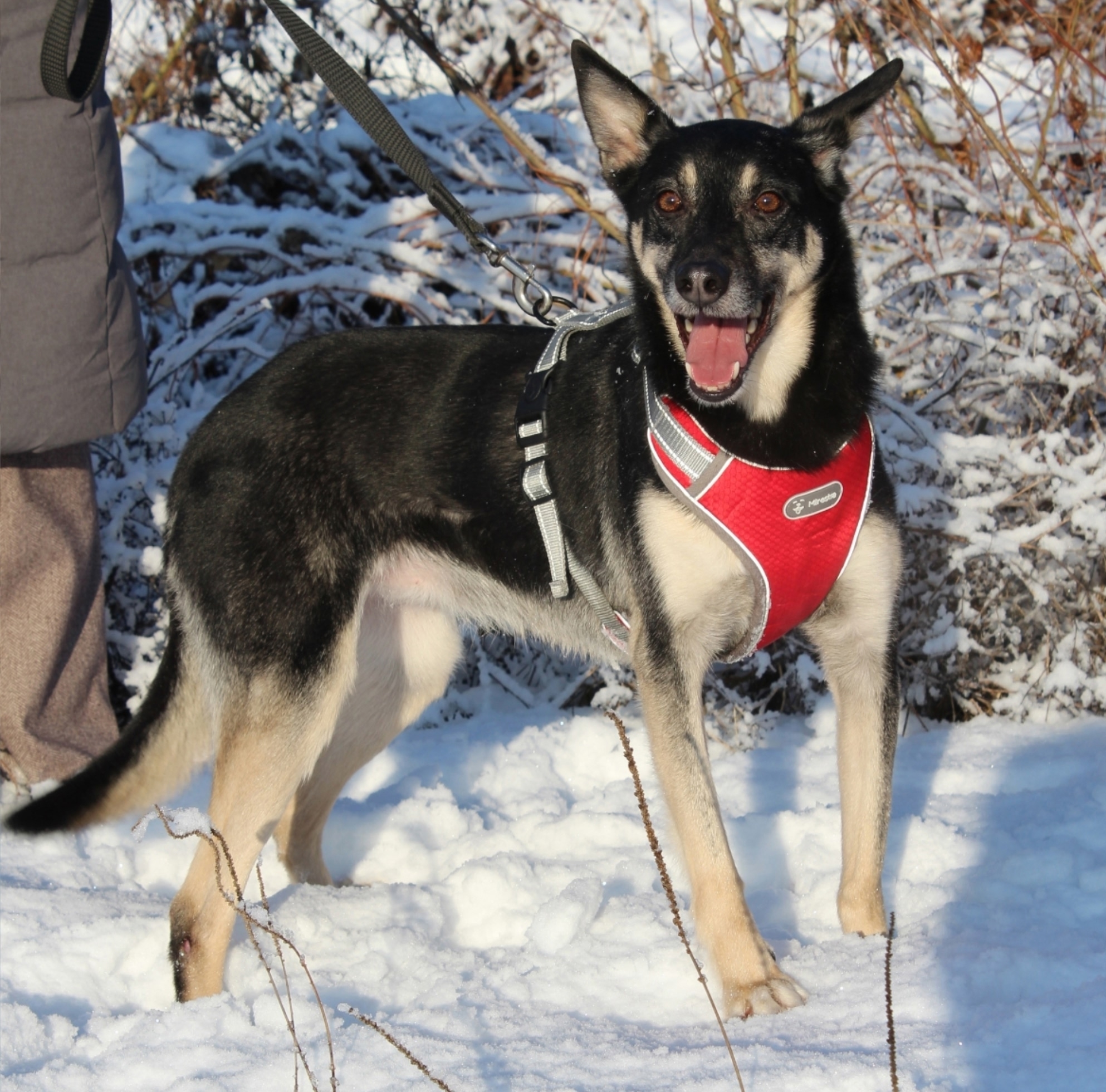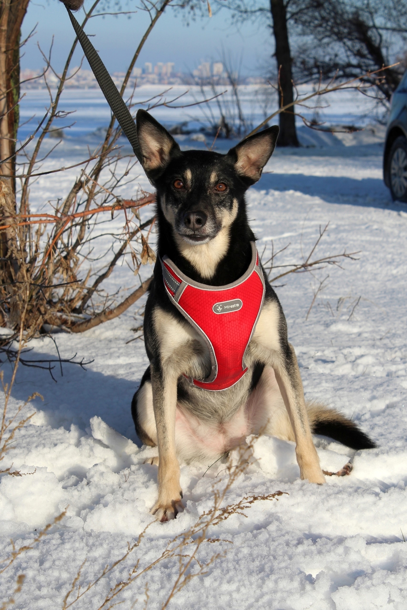 Тэфи сейчас 6 лет. Она привита, обработана, стерилизована. Ходит на поводке, хорошо ездит в машине.