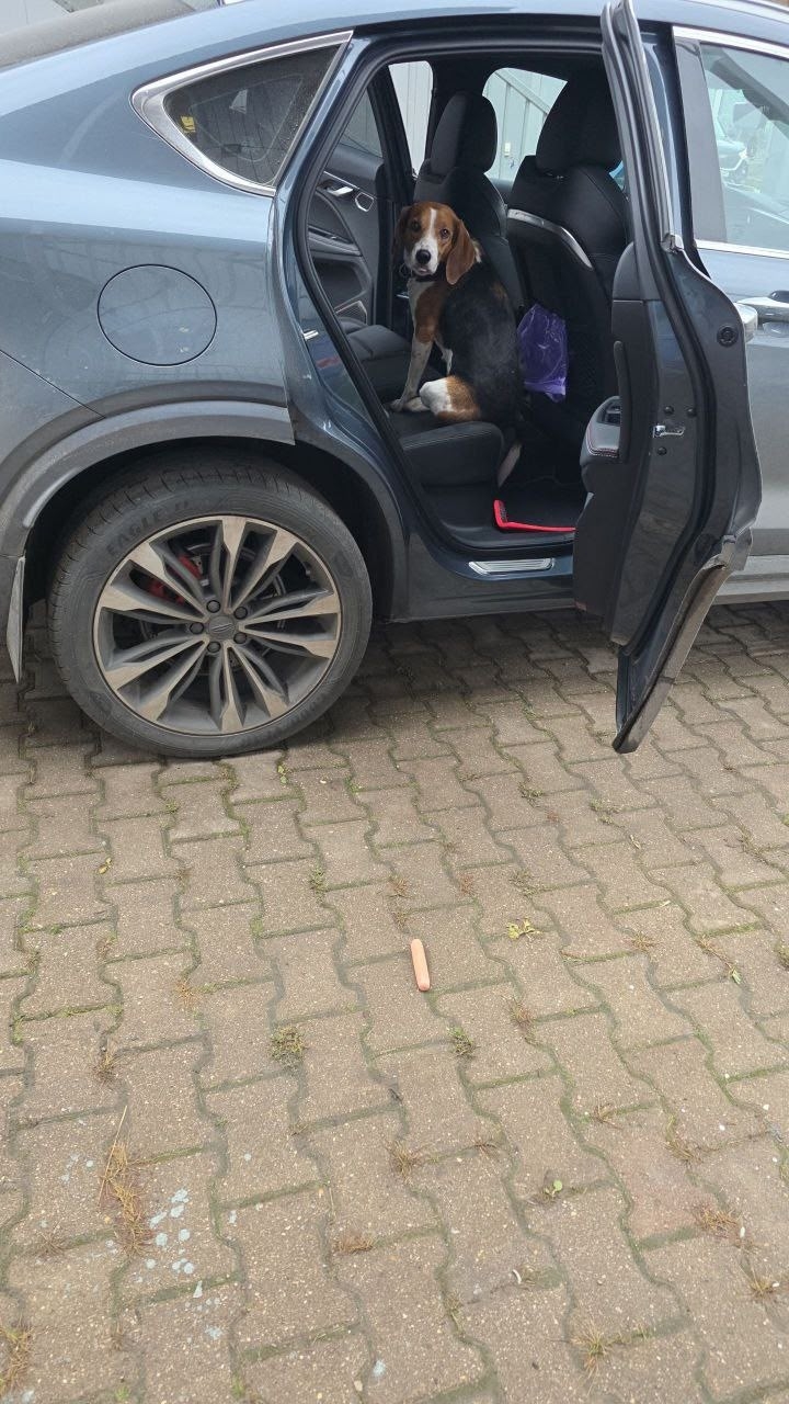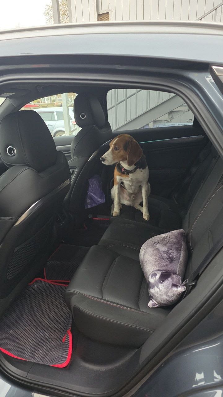 Всем привет. Сегодня на выезде из Щербинки на дороге сидела собака – машины ее объезжали. Я вышел посмотреть бирку, она не давалась. Пока ходил за ней, запрыгнула ко мне в машину, обосрала салон и рычала, не давала себя выгнать. Довез до ветеринарки на Силикатной. Там удалось ее выгнать. Там она и сидит
