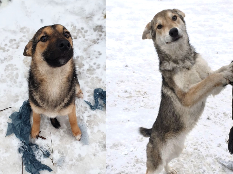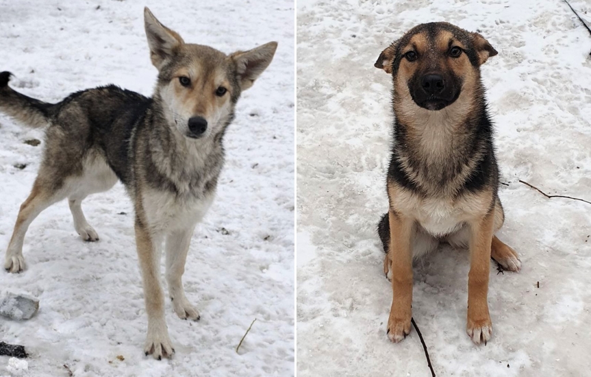 Мы пытались всю осень…не получилось. Из пяти щенков, найденных школьниками в августовском лесу, выжили только они. Началась школа, и сначала уехали ребята, заботившиеся о малышах, а в декабре перебралась в город и бабушка, присматривавшая за ними. Девочки остались в деревне, кормят их теперь 1 раз в 2-3 дня.