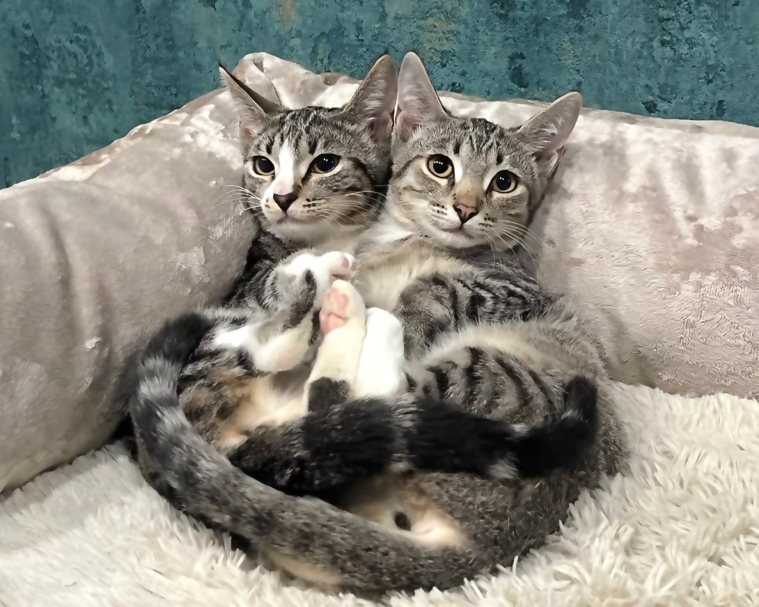 Мона и Лиза нежные и ласковые малышки, на руках замирают. С незнакомыми людьми делают вид, что они скромницы, а вот тому, кто уже прошел проверку временем демонстрируют все свои таланты и умения. Устраивают скачки наперегонки, игры со всем, что катается и шуршит, пытаются кошмарить взрослых котиков, а набегавшись и наигравшись идут наминать и сосать любимый лежак.🥰
