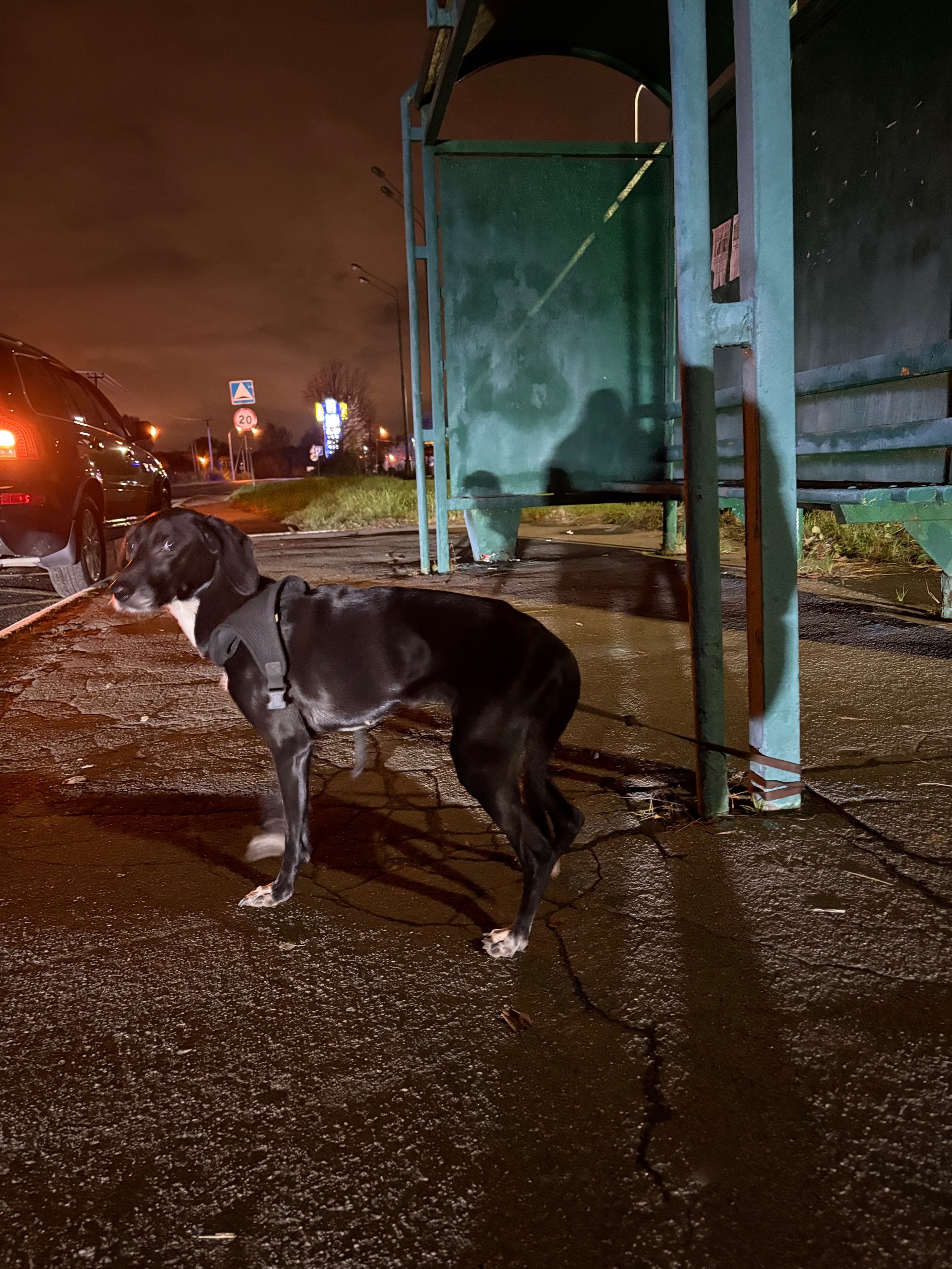 Кто-то выкинул собаку, привязав её к остановке! По виду щенок, команды знает! Могу накормить, но забрать не могу! Спасите собаку 💔