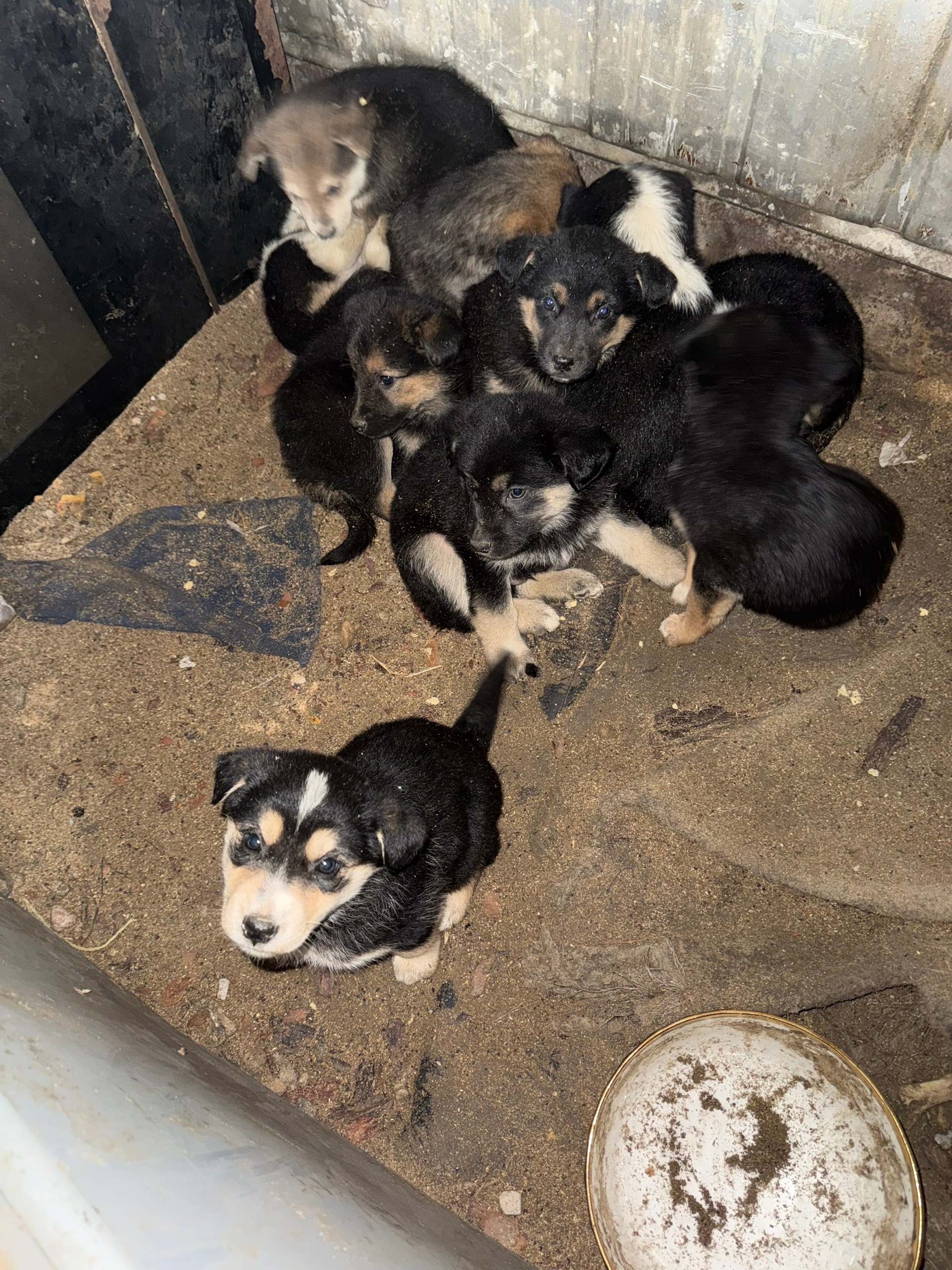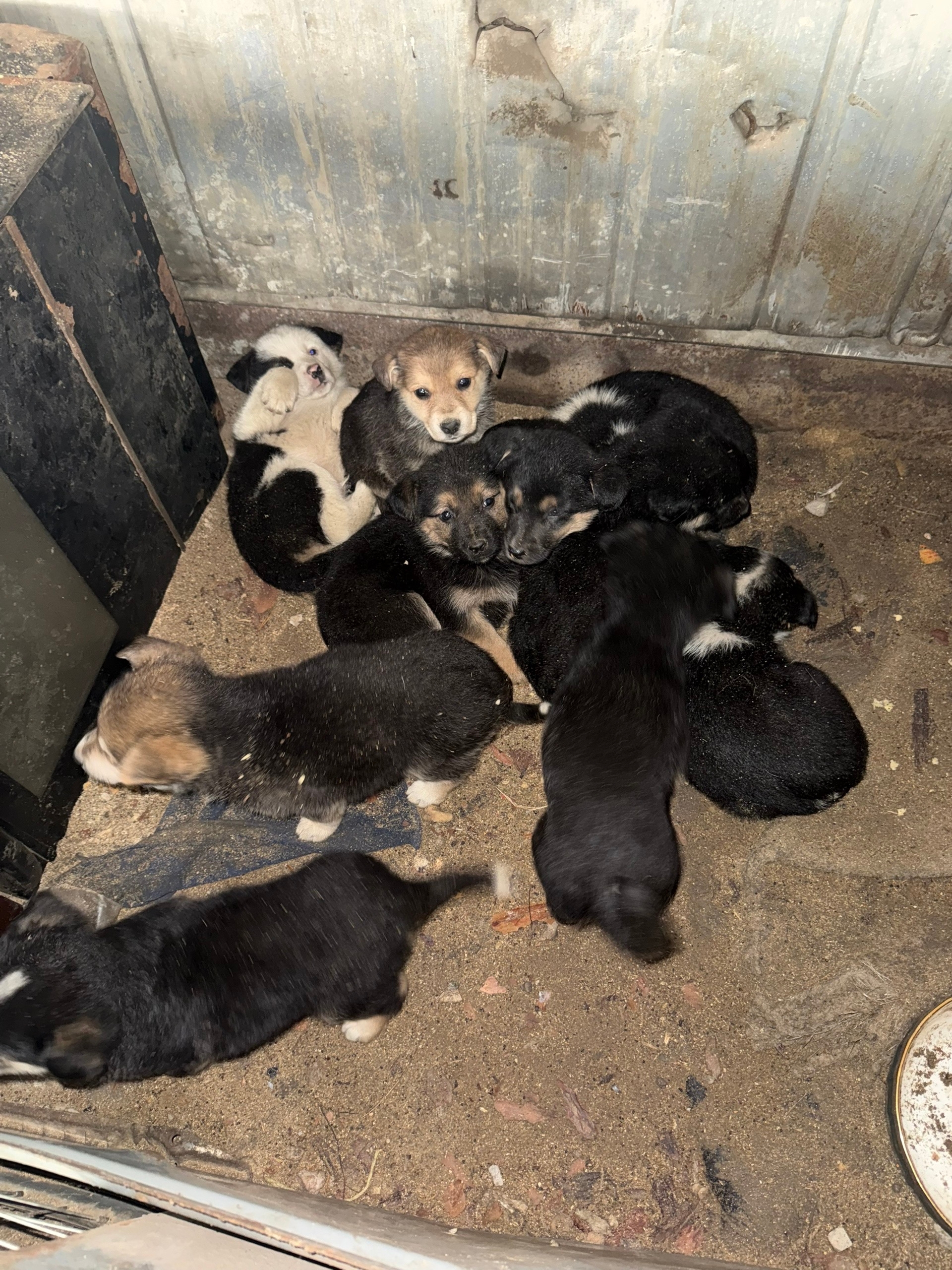 На предприятии ощенилась собака (11 щенков). Малыши выросли и лезут под колеса. Теперь их уже 10 😭