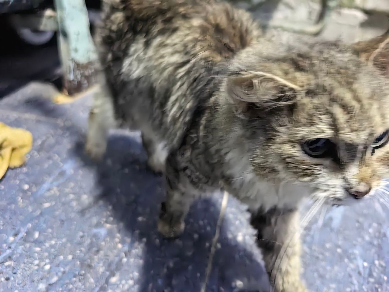 На промзоне прибилась кошка. Вернее отбили от собак. 100% домашняя…