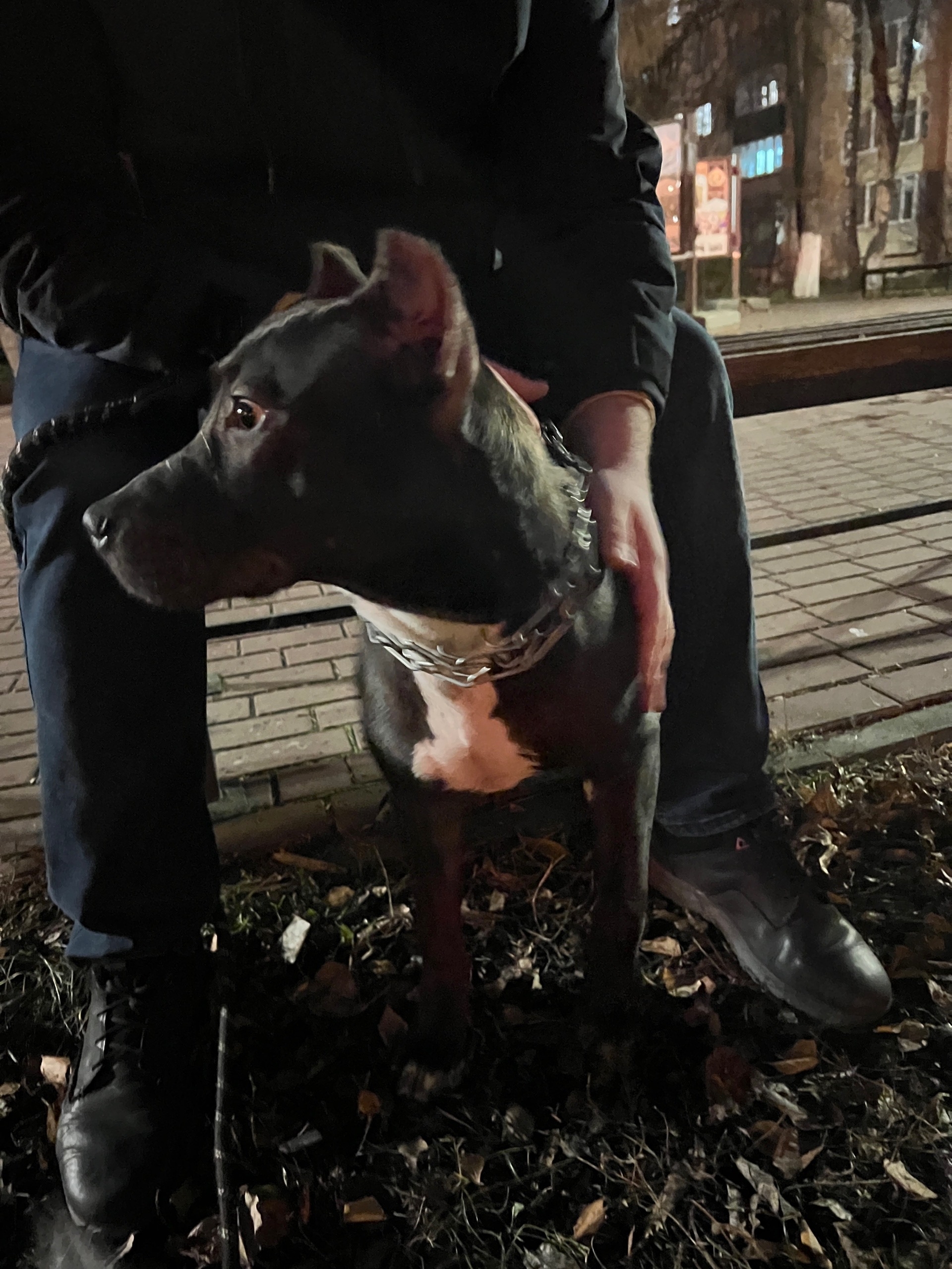 Найден кобель,преположительно пит. Тигровый окрас,на..