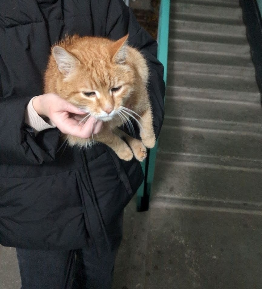 Найден кот! Район Бежица, ул. Донбасская, д. 24. Вчера около 23:00 сидел на улице возле 2-го подъезда, громко мяукал. Мы временно взяли его на передержку – жалко было оставлять на улице. Кот упитанный и очень ласковый, идёт на руки. Громко мяукает, не хочет сидеть один. Если это ваш питомец или вы готовы забрать его, пожалуйста, напишите мне. Спасибо!