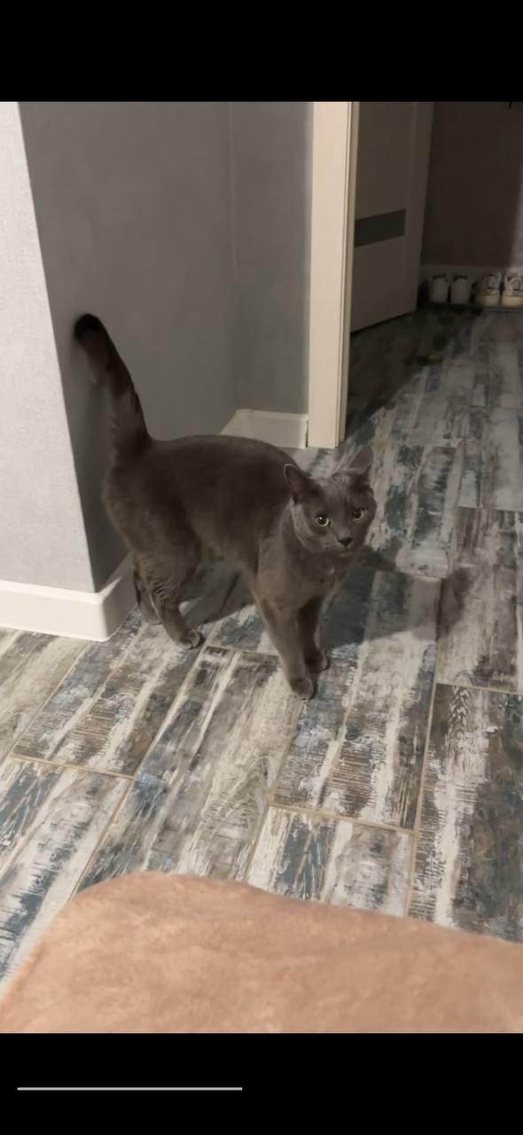 Найден кот, район Новое Пушкино, улица Просвещения, 12к1, серый, крупный мальчик с белым пятнышком на груди, очень ласковый. Ищем хозяев потеряшки, номер для связи 89997157795, ссылка на тг https://t.me/annabelkk