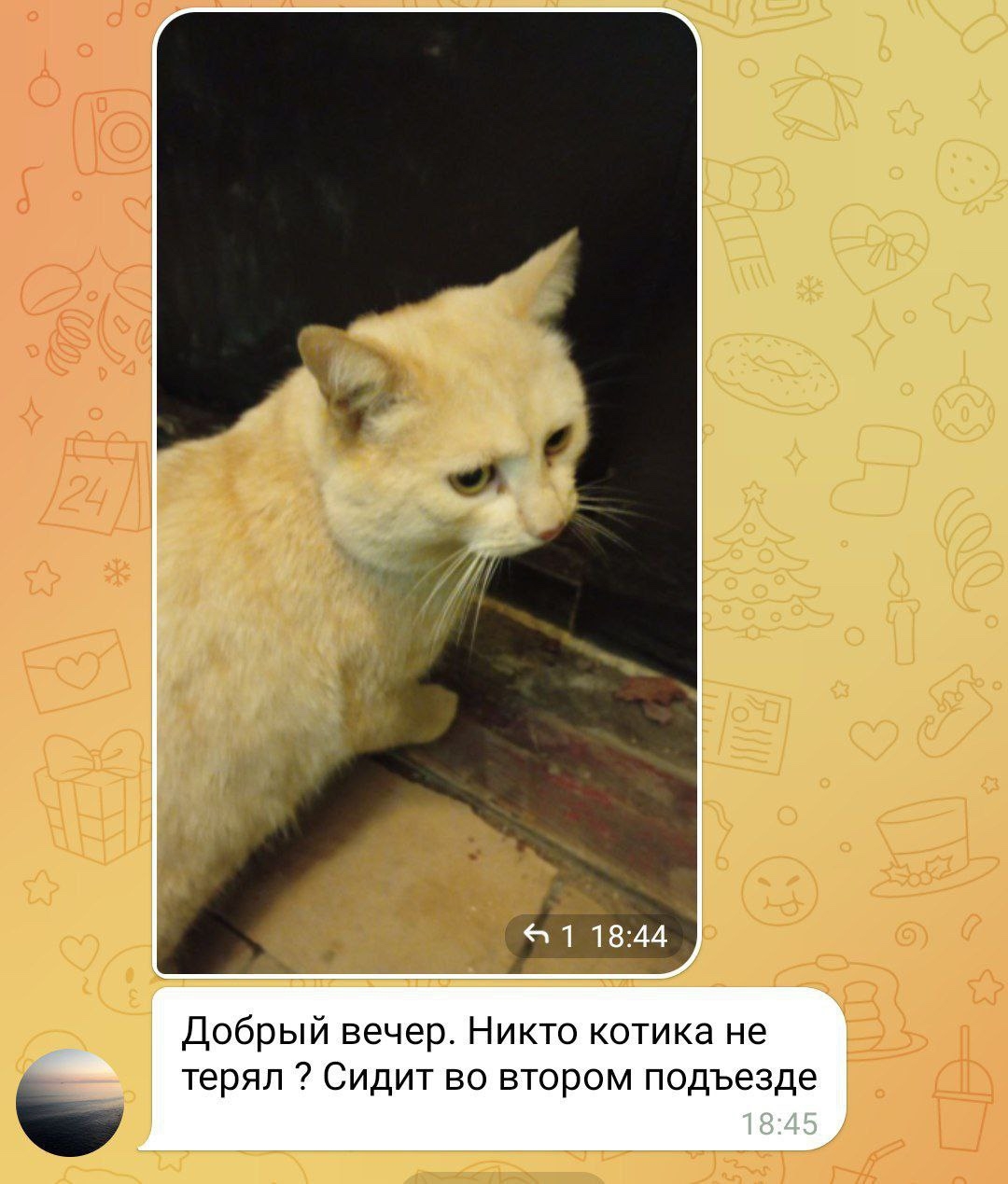 Найден кот. Сегодня. Химки Сначала был в подъезде,потом на улице..