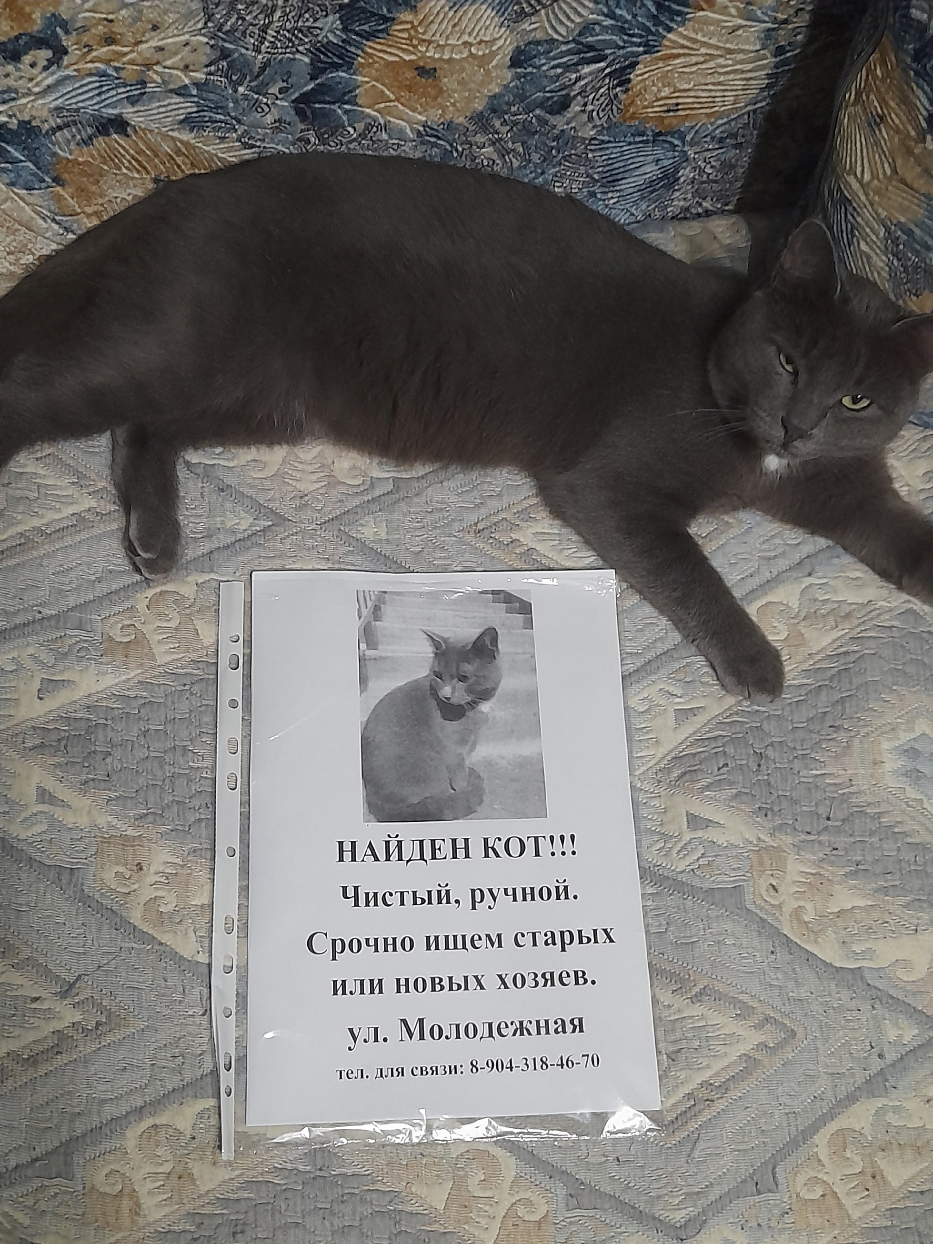 НАЙДЕН КОТ!!! Территориально ул. Молодёжная. СРОЧНО ищем старых/новых хозяев для молодого, ласкового кота, возраст примерно 3 года. Сидел под дождём, весь потерянный. Котик игривый, ухоженный, домашний. Присмотритесь, пожалуйста, может кто-то захочет взять такого брутального мальчика. Осмотр у ветеринара пройден, кастрирован.