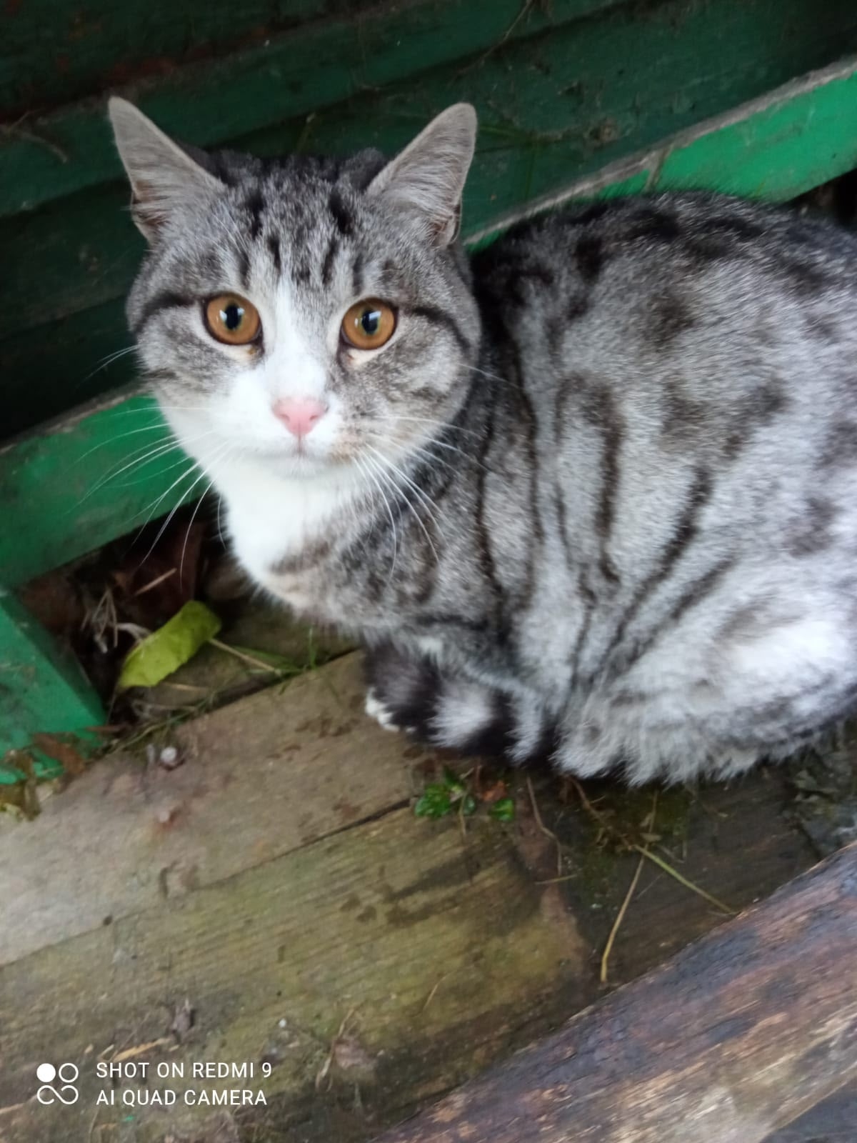 Найден котенок. Кот. Не больше 8 месяцев. Появился в частном секторе. Игривый, не агрессивный, хорошо реагирует на других животных.