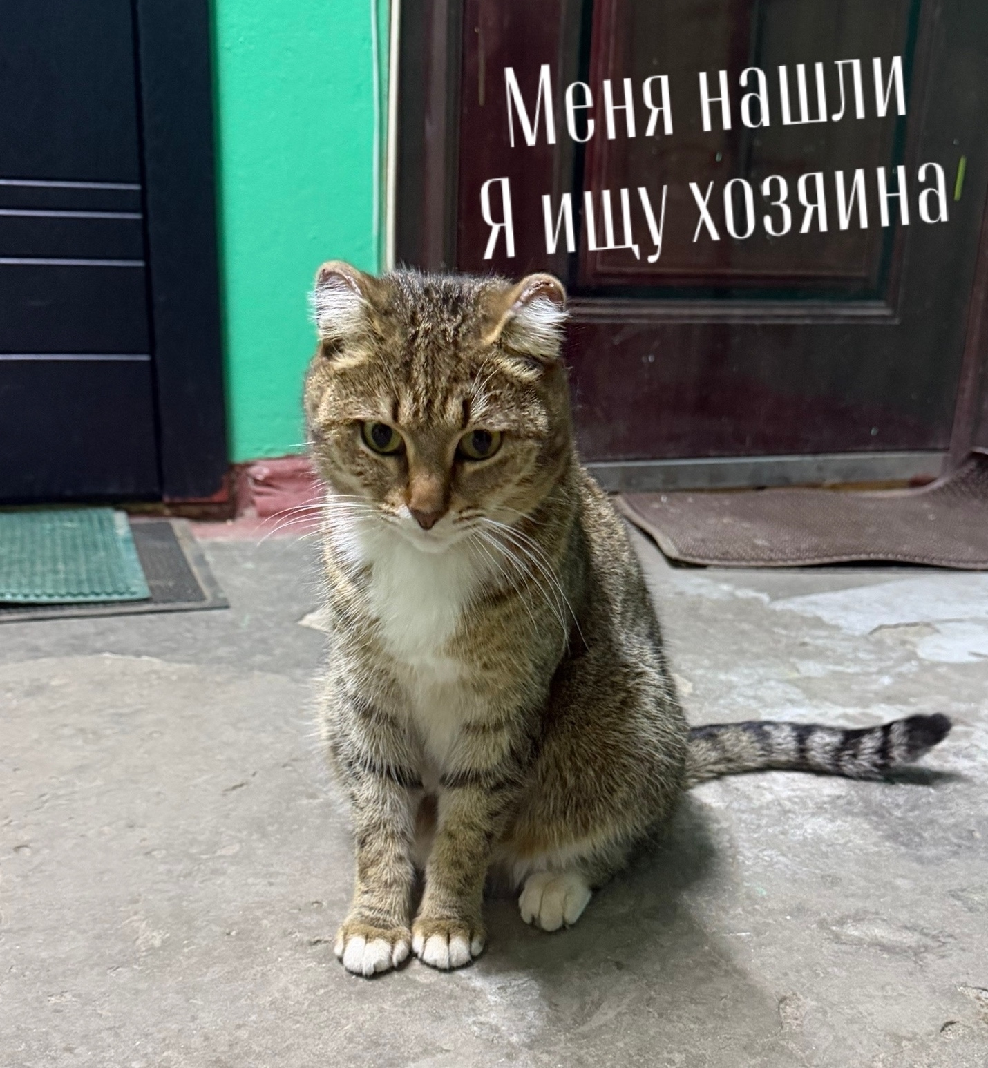 Найден котик около месяца назад в Фокинском районе, пр-т Московский д. 50 , живет в подъезде, под присмотром соседей.