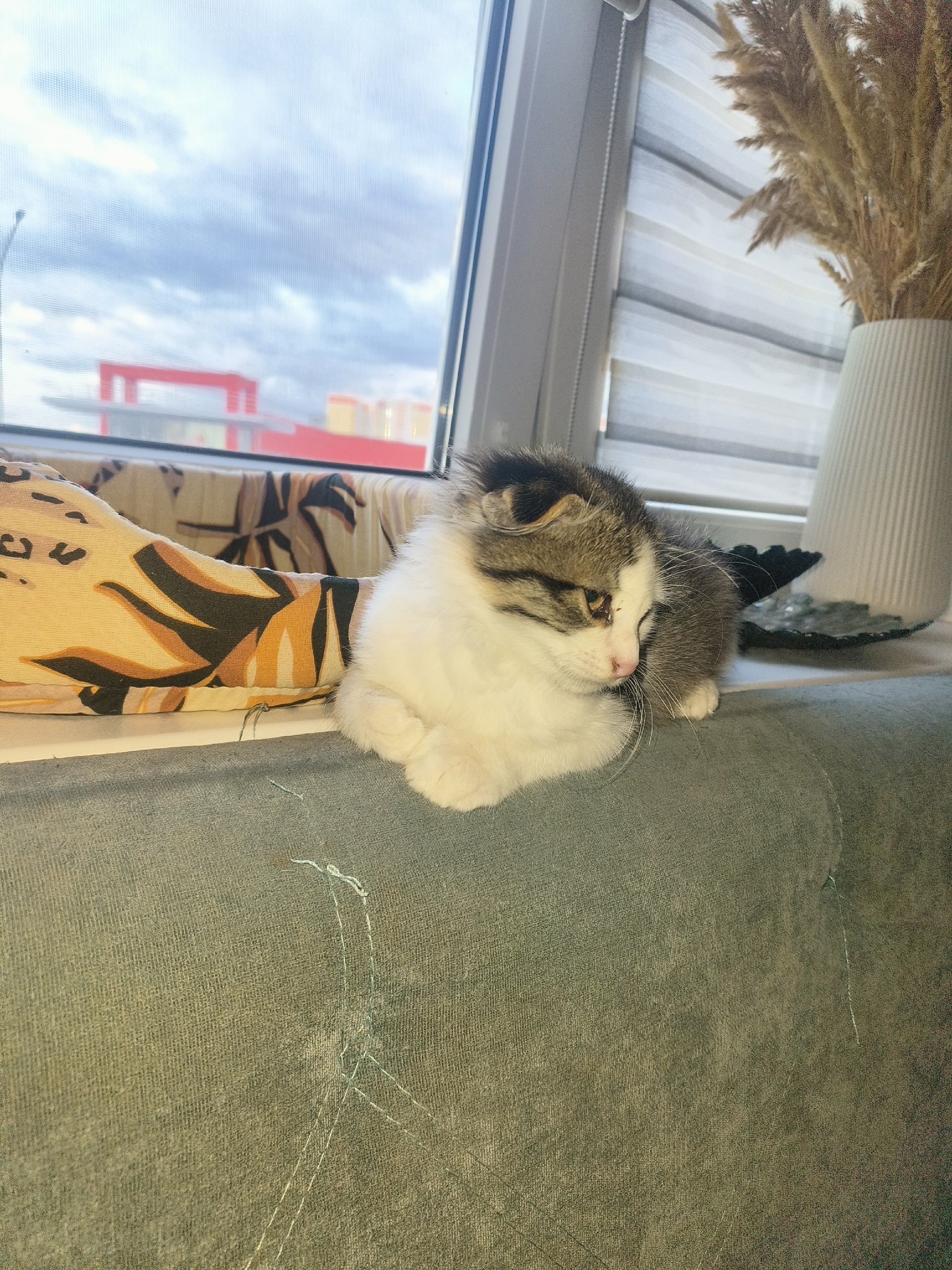Найден маленький котик,в районе Объездная 39,вислоушка,забрали на..