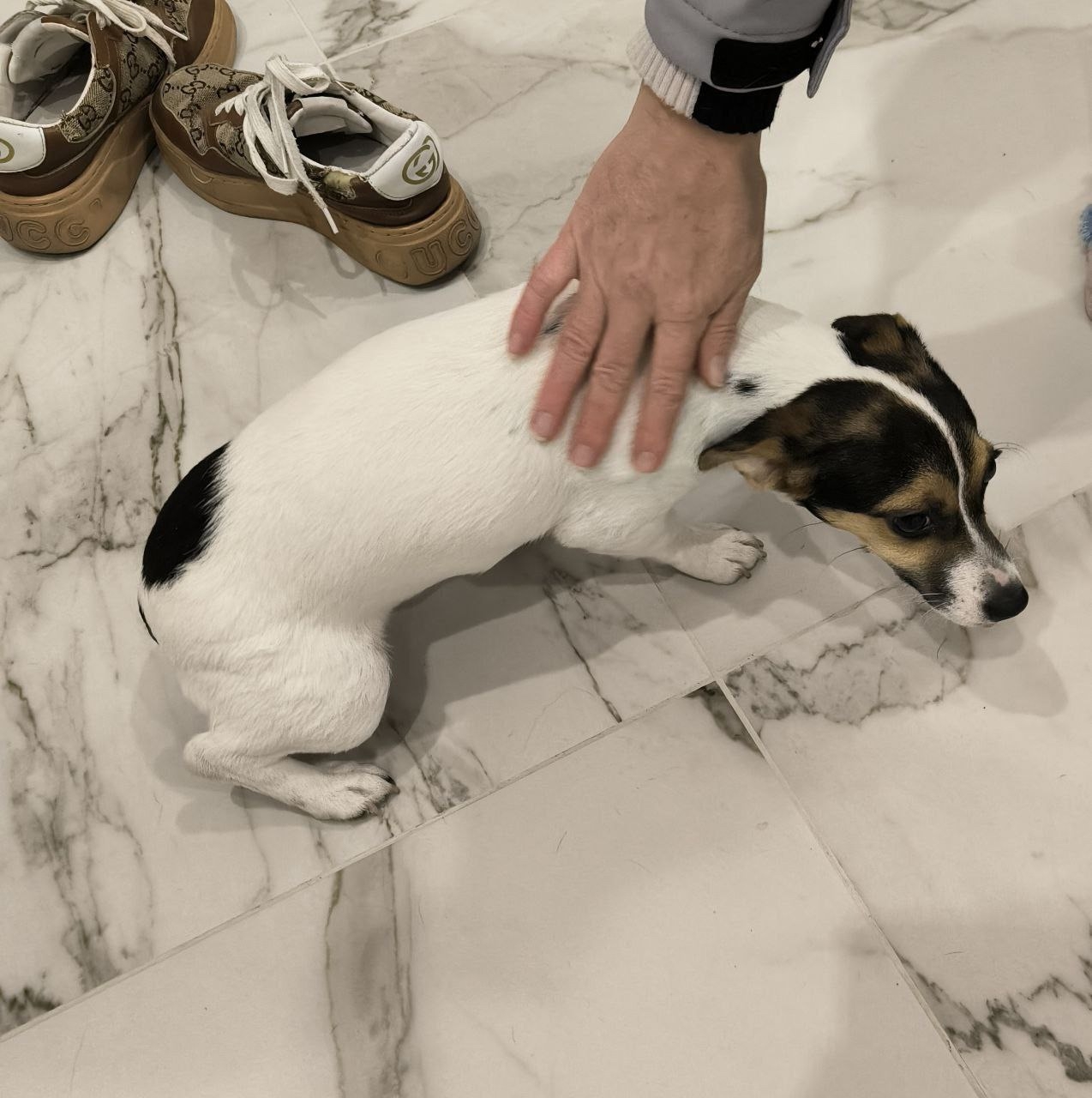 Найден щенок в районе ул. Валерия Гассия, на вид 3-4 месяца, похоже помесь с Джек Расселом . Девочка. Хвост купирован. Чистенькая, когти подстрижены, явно домашняя. Ищем старых и новых хозяев. 89034348410