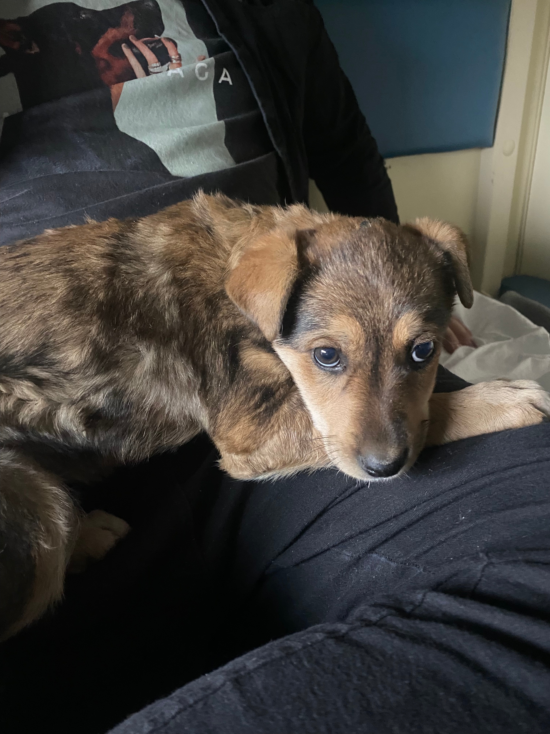 Найдена собачка, на вид 1,5-2 месяца. Нашли ее под бетонными плитами, сколько она там сидела, неизвестно, но была очень напугана, возможно, ее обижали, потому что к людям относилась с опаской. Теперь уже немного привыкла. Игривая, добрая, умная, кушает всё, хорошая охранница. Приехала в командировку, будет у меня на передержке до 27 ноября! Надеюсь, что найдутся добрые люди, забрать ребенка 🙏🏻