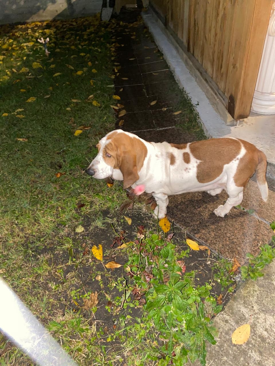 Найдена собака бассет хаунд, белая с коричневым, девочка,..