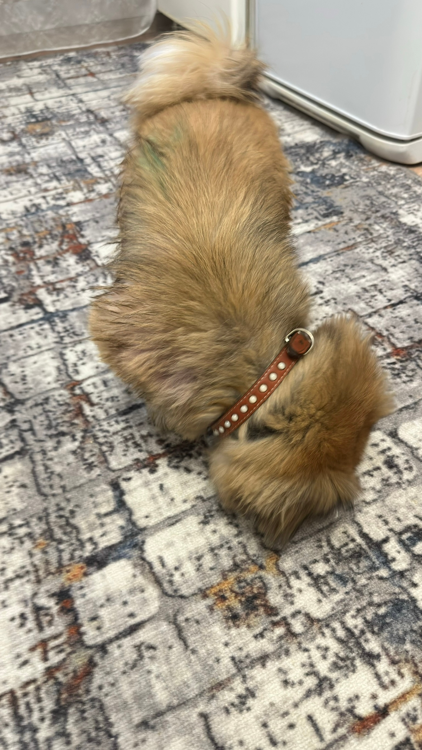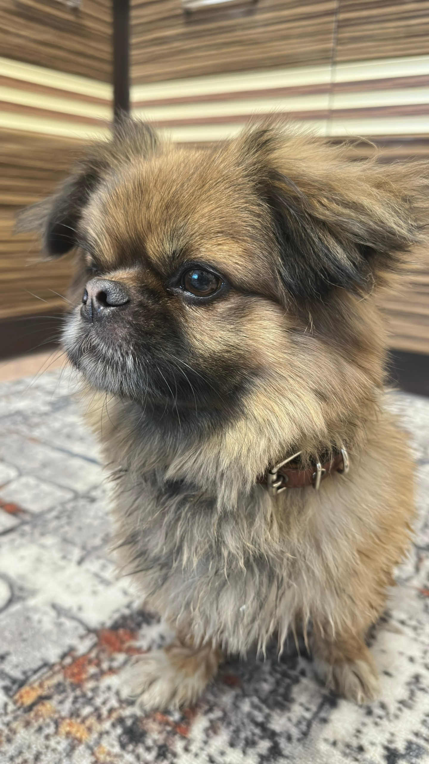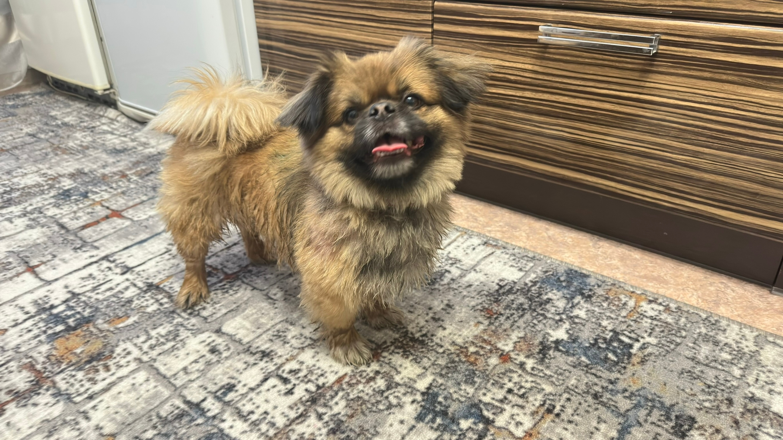 Найдена собака на Малахова 146. Взрослый пекинес, мальчик, в оранжевом ошейнике. Пес замерз, поэтому было принято решение временно забрать домой. Видно, что домашний, спокойный.