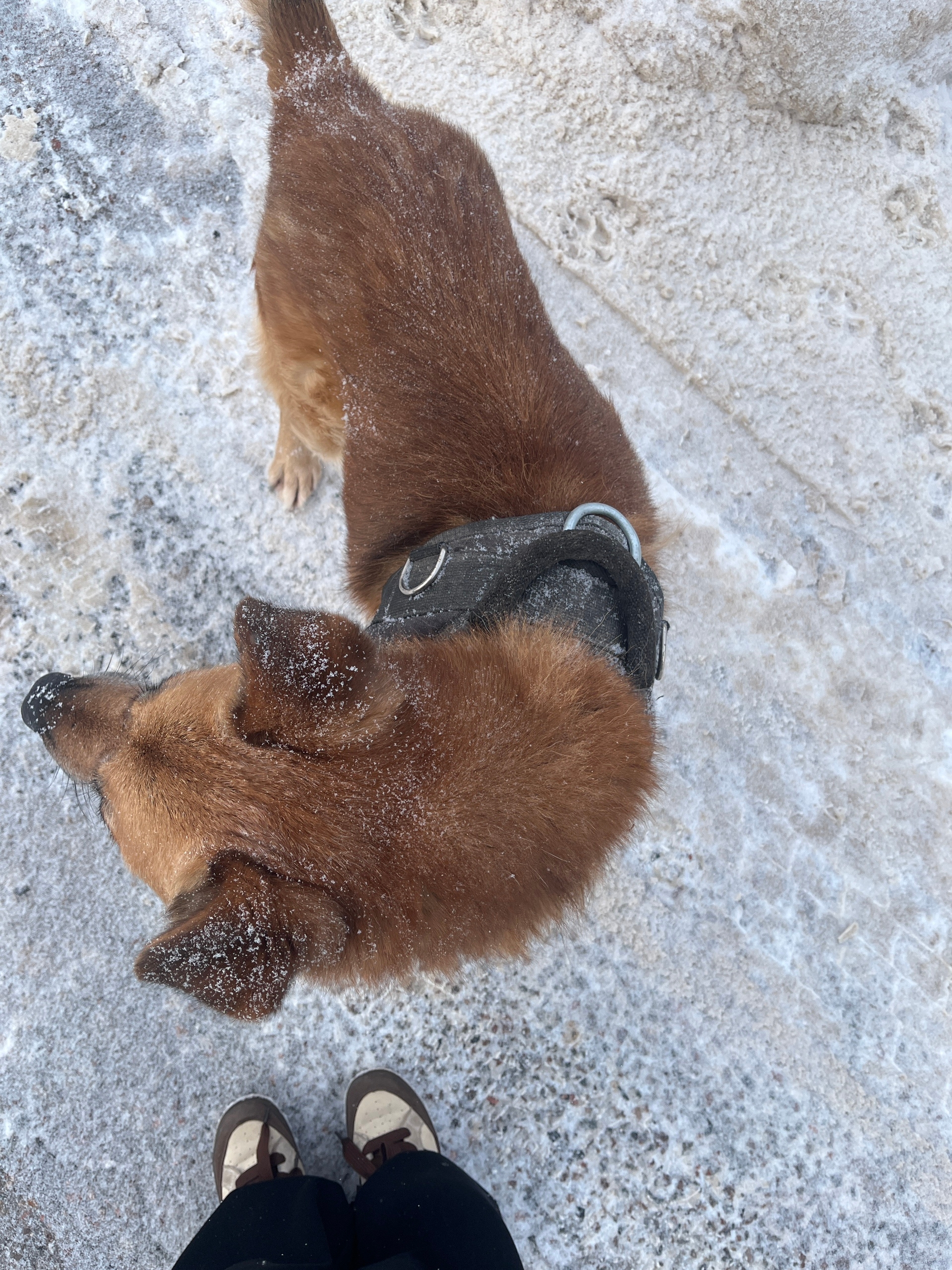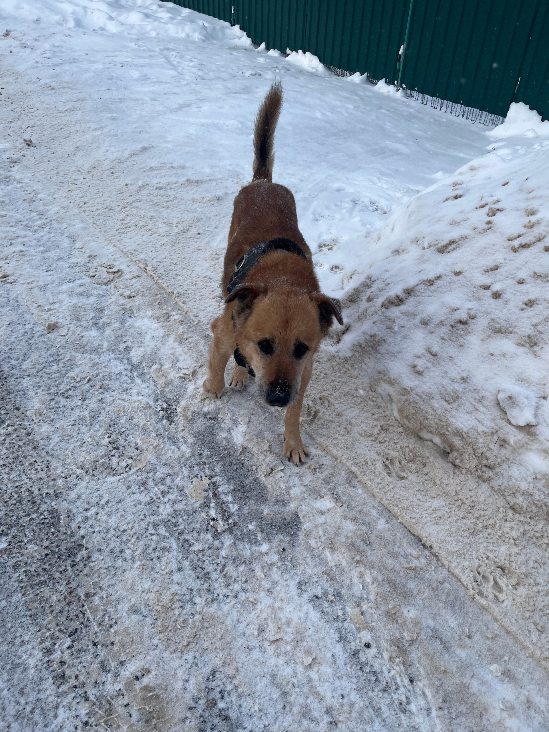 найдена собака на улице карьерная, коричневая, кабель. бродит по..
