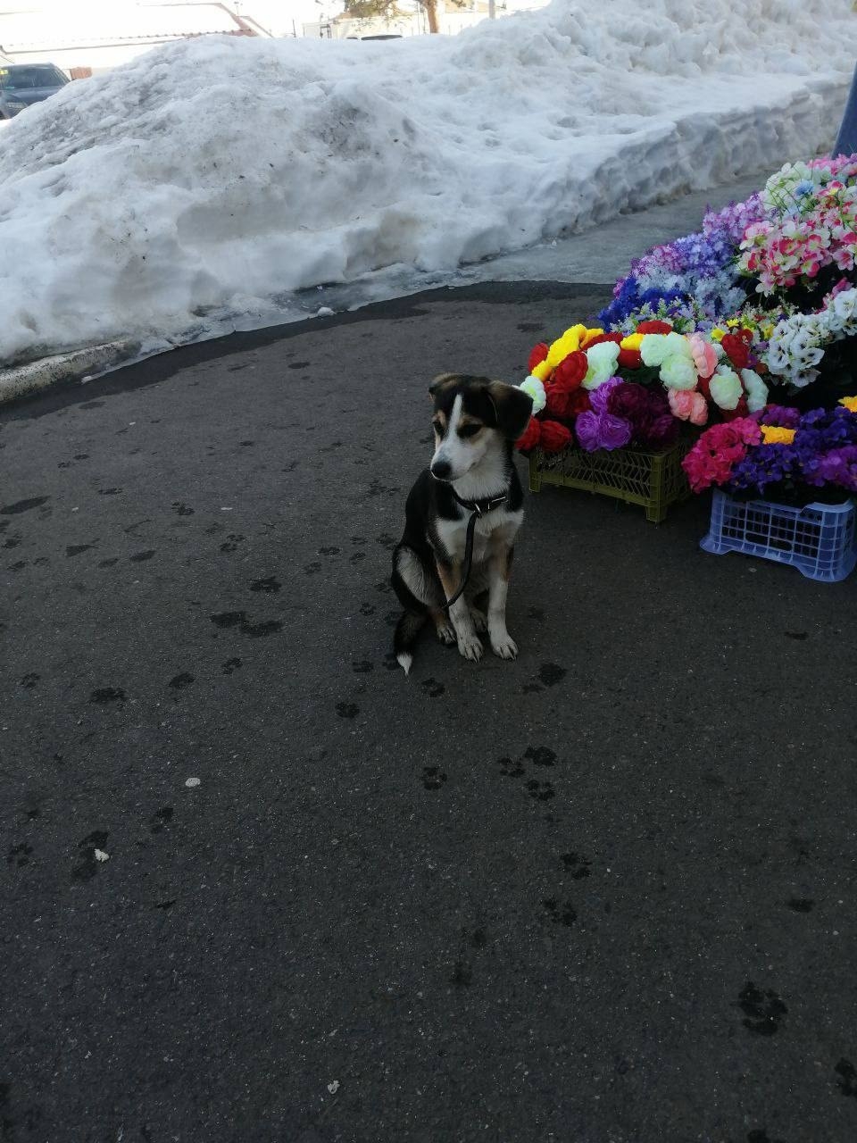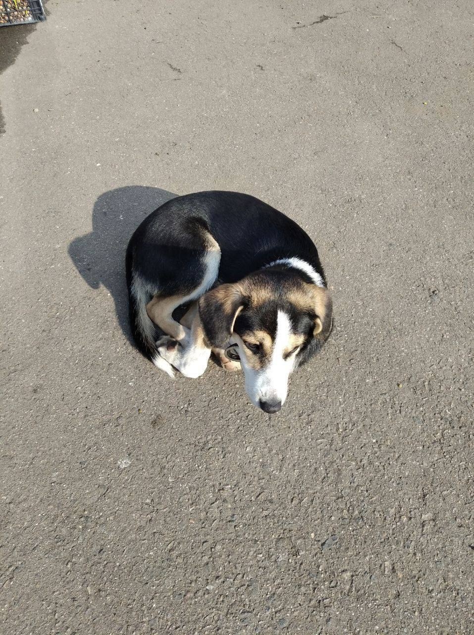 Найдена собака! ! Уже 3 день на улице в Михнево (Мо) бродит трехцветная некрупная собака. Очень ласковая, подходит ко всем людям, в ошейнике, на вид возраст мес 6-8.