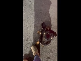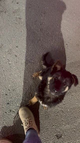 Внешне овчаристая сука и с ней один щенок. Прибились либо выбросили. Сука выглядит неухоженной