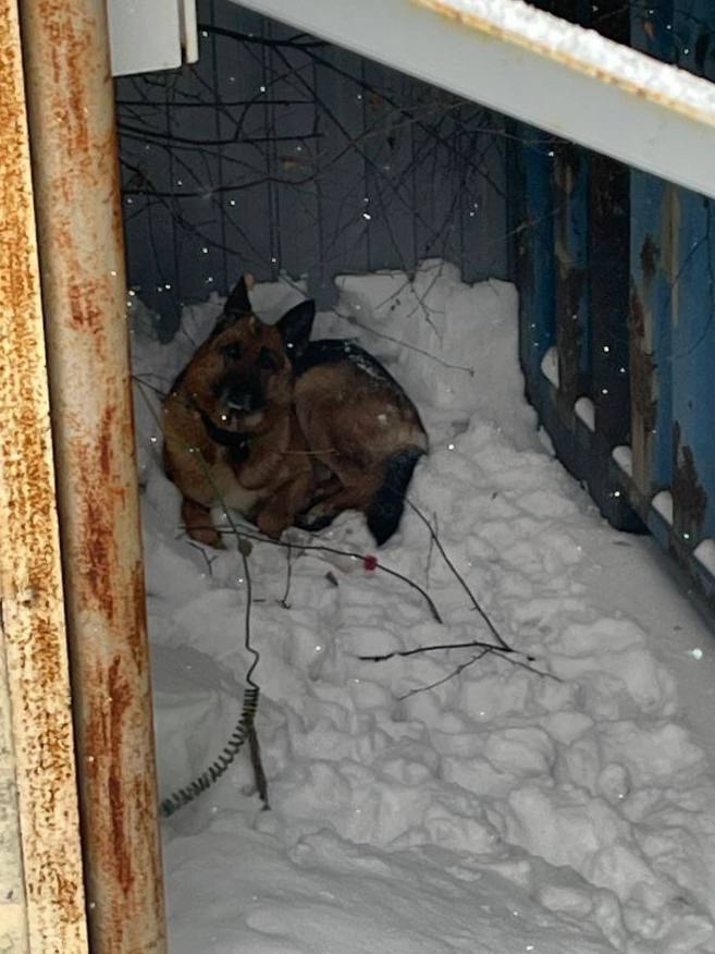 Найдена овчарка с ошейником. К себе не подпускает. Она на северной стороне рынка.